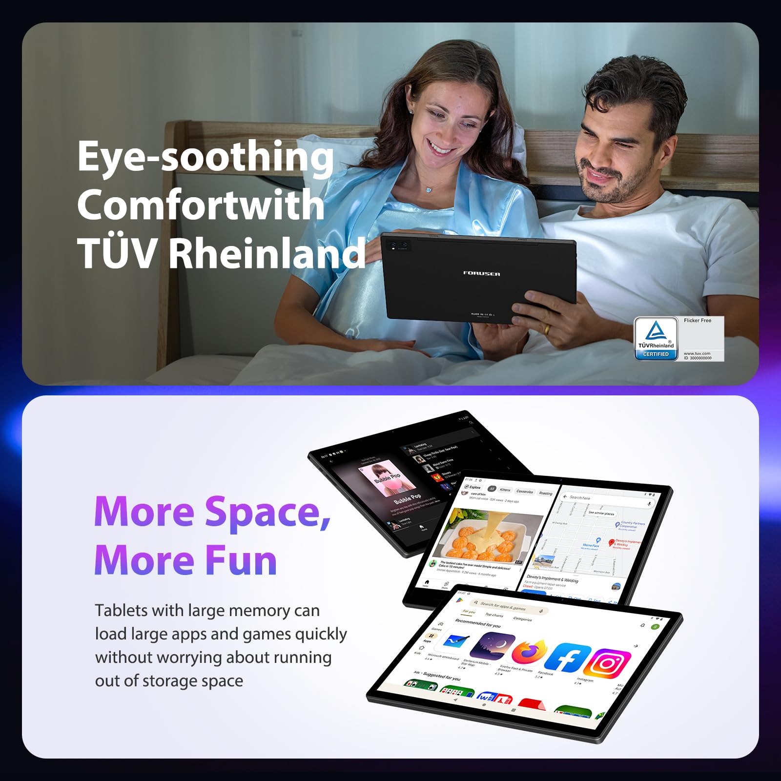 - 4 Lautsprecher + 4 Navigationsmodi: Um Ihnen ein besseres externes Hörerlebnis zu bieten, sind die FORUSER-Tablets mit 4 Lautsprechern ausgestattet, die jedes Audio-Detail ernst nehmen und für einen reineren Klang sorgen. Außerdem bietet es dank der Unterstützung von GPS/BeiDou/GLONASS/Galileo eine genaue Positionsbestimmung. Mit einem 7,6 mm dicken Vollmetalldesign, abgerundeten Kanten und einem sanften Mattierungsverfahren bietet das Tablet eine weiche Haptik und ein hochwertiges Aussehen, das viele Nutzer als angenehmer empfinden als Kunststoffoberflächen