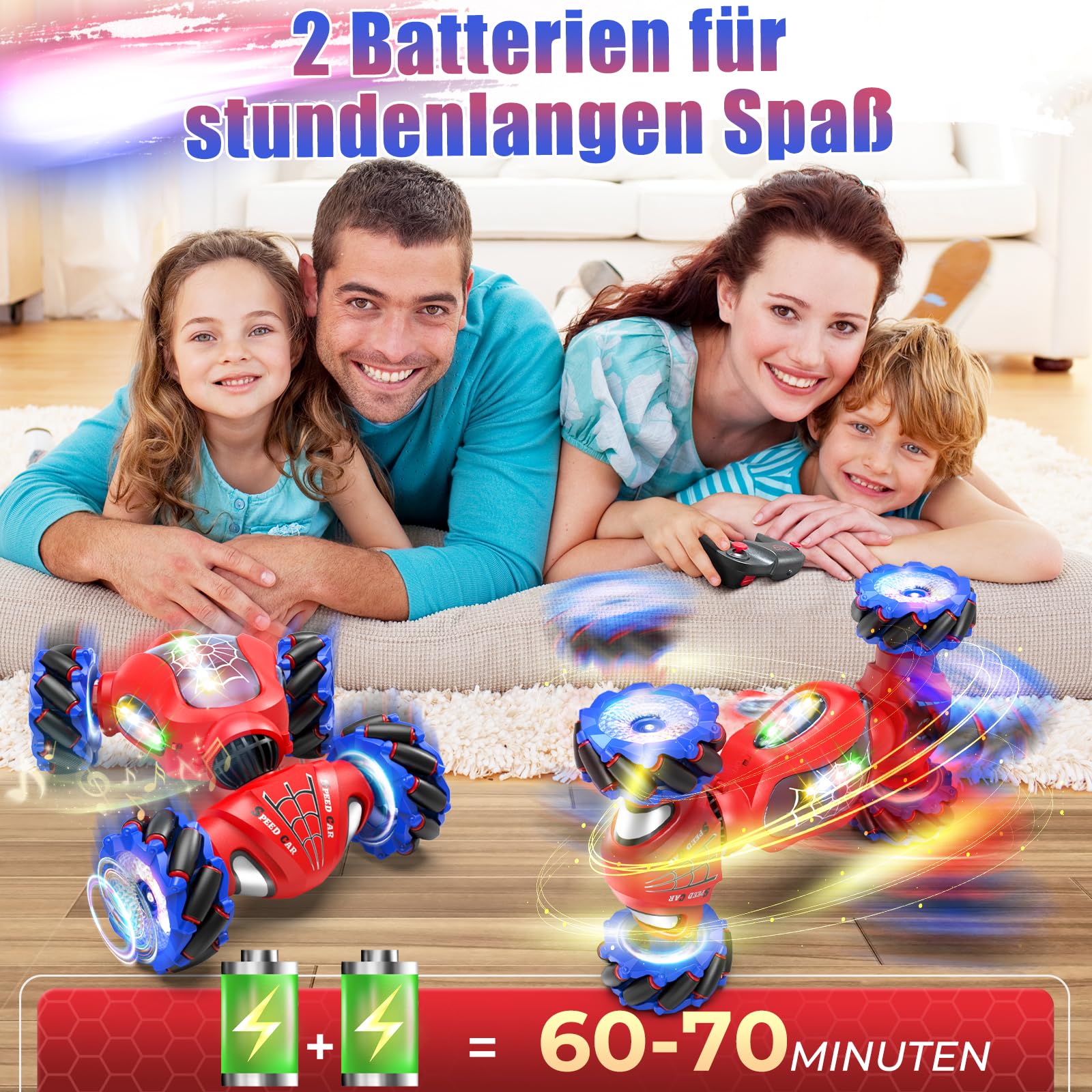 • Super Cool Ferngesteuertes Auto, 2024 neuesten Spinne RC Auto ist multifunktional und einfach zu bedienen. Das ferngesteuerte Auto kann sich um 360° drehen, auf beiden Seiten fahren, vorwärts und rückwärts fahren, sich nach links oder rechts drehen und driften. Einzigartiges Spinnendesign mit coolen Lichtern und Sprüheffekten des Spielzeugautos wird definitiv die Aufmerksamkeit von Kindern im Alter von 6-12 Jahren auf sich ziehen, die es kaum erwarten können, dieses Stuntauto zu besitzen!