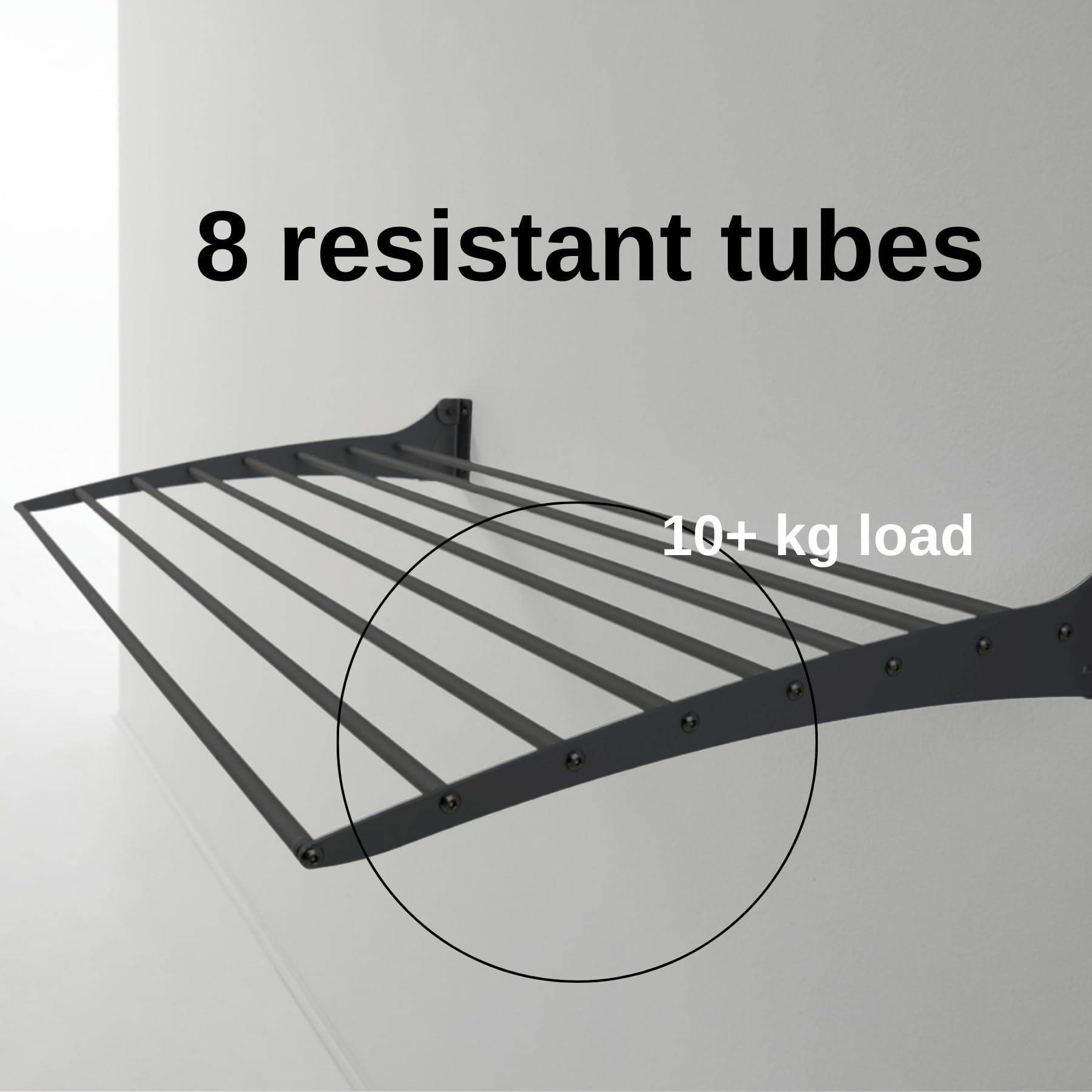 - ▶️ Platzsparendes Design: Klappen Sie ihn bei Nichtgebrauch an die Wand: Der Wandwäschetrockner Foxydry Fold ist mit 8 stabilen Stangen ausgestattet, die ein bequemes Aufhängen der Wäsche ermöglichen. Dank seiner klappbaren Funktion lässt er sich bei Nichtgebrauch einfach gegen die Wand klappen, minimiert den Platzbedarf und bewahrt die ästhetische Harmonie des Raumes.