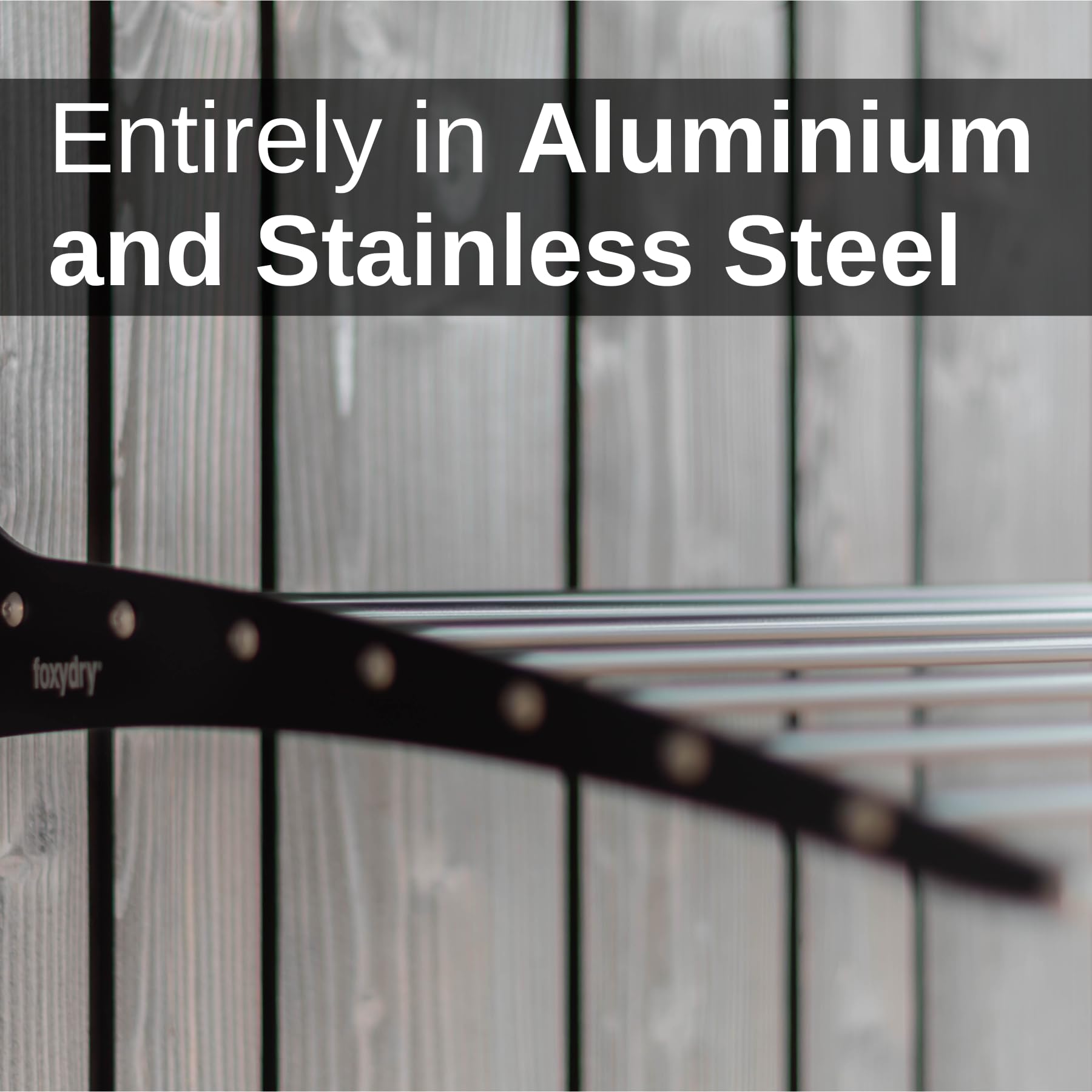 - ▶️ 【Aluminium und Edelstahl】 Langlebig und witterungsbeständig: Der foxydry Fold Wäscheständer hält Witterungseinflüssen wie Salz, Regen, Wind, Sonne stand. Entworfen und hergestellt in Italien, der Wandtrockner foxydry Fold besteht komplett aus Aluminium und Edelstahl. Solche Materialien, die von Natur aus langlebig und zuverlässig sind, schützen den Wäscheständer vor Witterungseinflüssen und verhindern die Bildung von Rost.