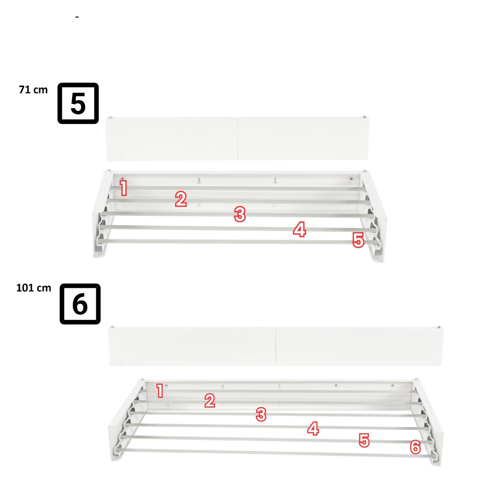 - ▶️ 【Perfekte Abmessungen für jeden Bedarf】: Erhältlich in zwei Varianten: Die 71 cm-Version umfasst 5 Trockenstangen und bietet bis zu 3,55 Meter Trockenfläche. Die größere 101 cm-Version verfügt über 6 Stangen und bietet insgesamt 6,06 Meter Trockenfläche. Diese Optionen machen ihn zu einem der besten Wäschetrockner für kleine Räume oder Balkone.