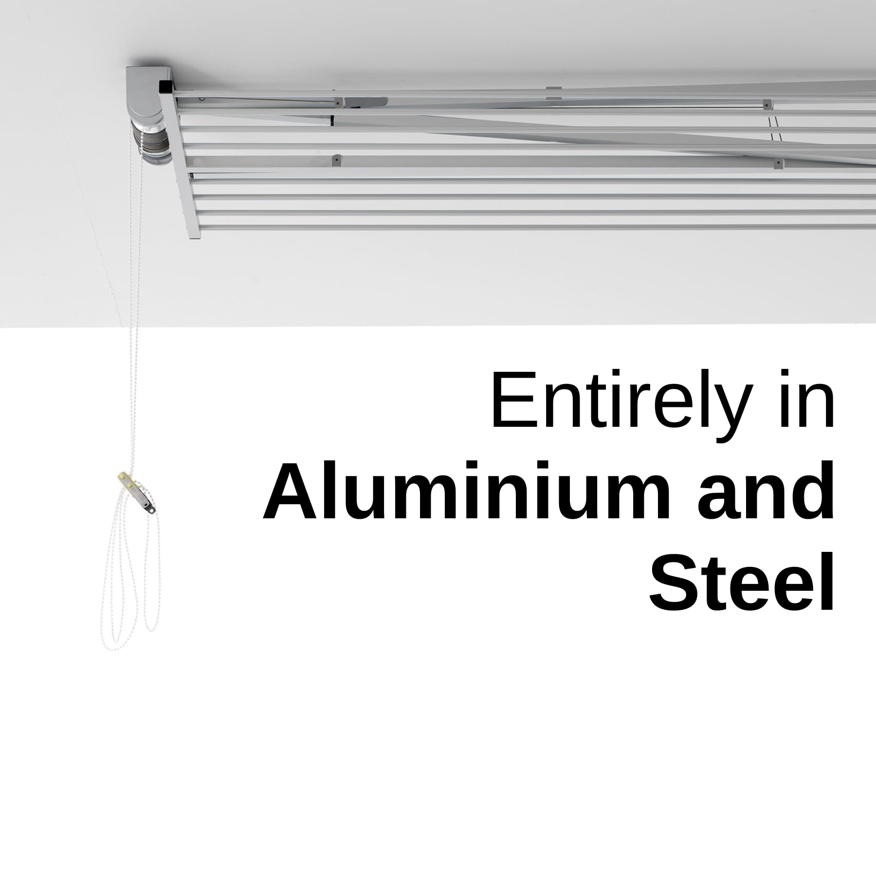 • ▶️ 【Aus Aluminium und Edelstahl】: Der Foxydry Mini-Deckenwäschetrockner wurde in Italien entworfen und hergestellt und besteht vollständig aus Aluminium und Stahl, was eine hervorragende Haltbarkeit und Widerstandsfähigkeit gewährleistet. Die hochwertigen Materialien machen ihn sowohl für den Innen- als auch für den Außenbereich geeignet. Zudem bleibt Foxydry Mini dank der speziell für den Außenbereich entwickelten Pulverbeschichtung über die Zeit hinweg intakt und ist gegen Feuchtigkeit, Wasser und Witterungseinflüsse unempfindlich.