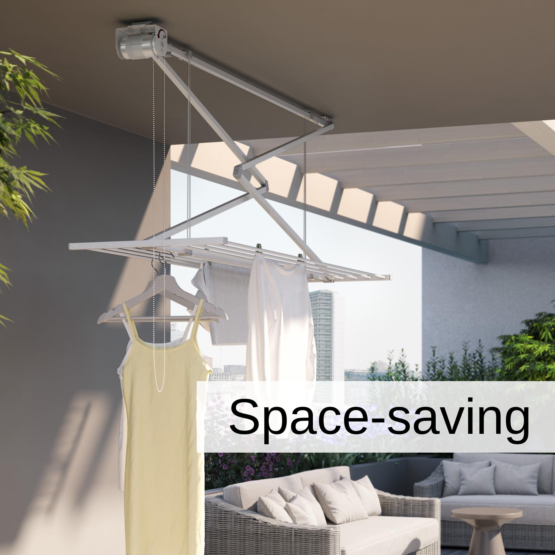 • ▶️ 【Schaffe neuen Raum mit Eleganz】: Foxydry Mini ist der Deckenwäschetrockner, der Platz schafft und an der Decke verschwindet. Perfekt als Innen- oder Balkonwäschetrockner, verschwindet der Deckenwäschetrockner Foxydry Mini aus dem Blickfeld, wenn er nicht in Gebrauch ist, und hält die Umgebung ordentlich und frei von Unordnung.