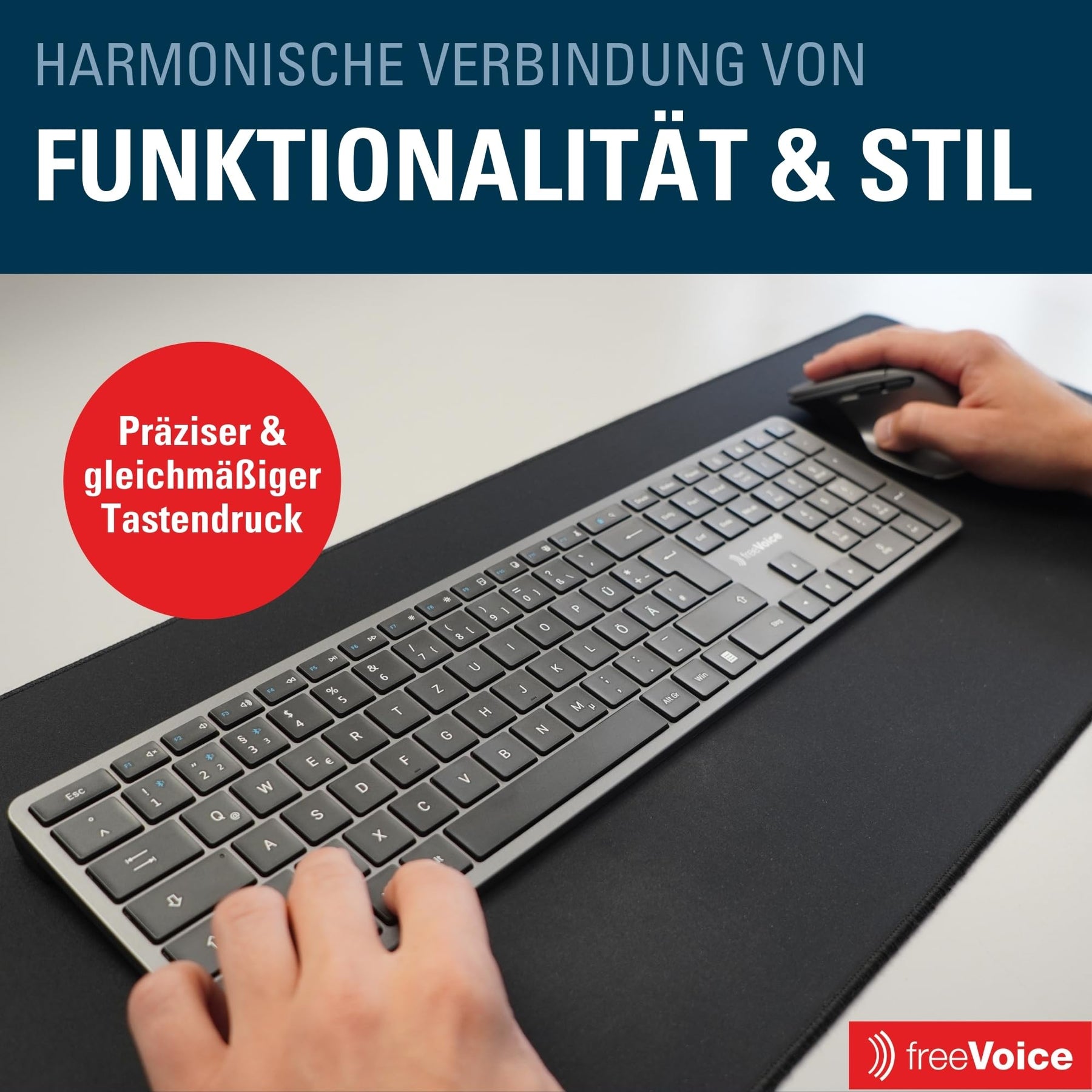 - 🙌 KABELLOSE VERBINDUNG - Tastatur und Maus lassen sich einfach über Bluetooth oder USB Empfäner (2.4GHz) verbinden & ermöglichen so eine stabile, zuverlässige Verbindung ohne störende Kabel.