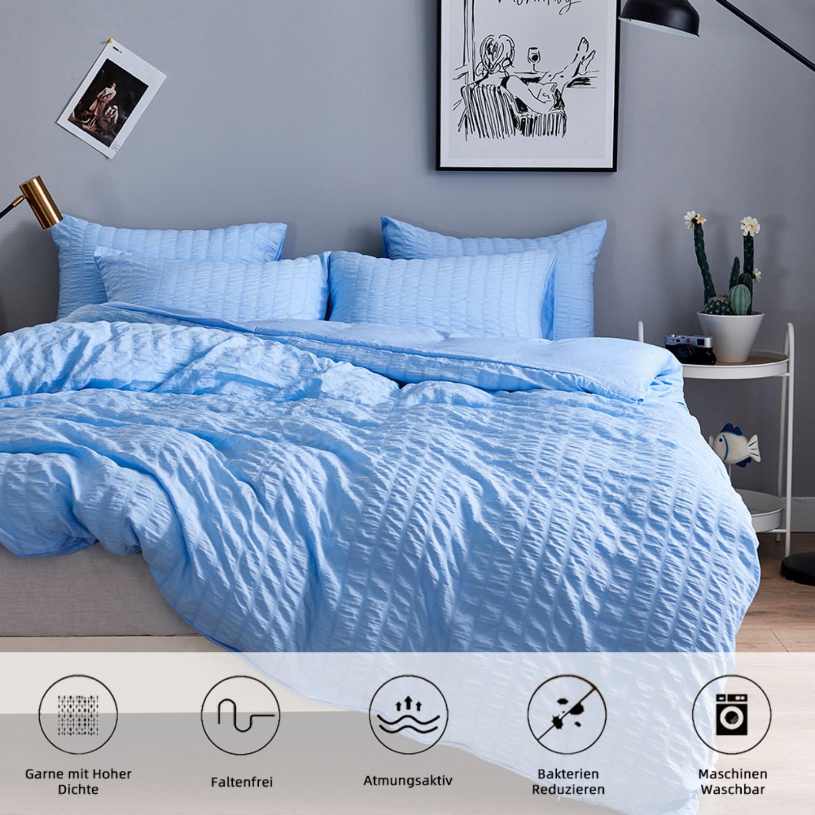 - Hochwertiges Material: Das seersucker Bettwäsche-Set besteht aus 100% Gebürstet Microfaser, das leicht, atmungsaktiv, ultra-weich und bequem, langlebig und hypoallergen ist, das Gefühl von Baumwolle hat und sehr hautfreundlich ist. Ausgezeichnete Weichheit und hautfreundliche Materialien sorgen für ideale Schlafbedingungen. Das Bettlaken ist zudem nach den Richtlinien der OEKO-TEX Norm 100 zertifiziert und enthält keine Schadstoffe.