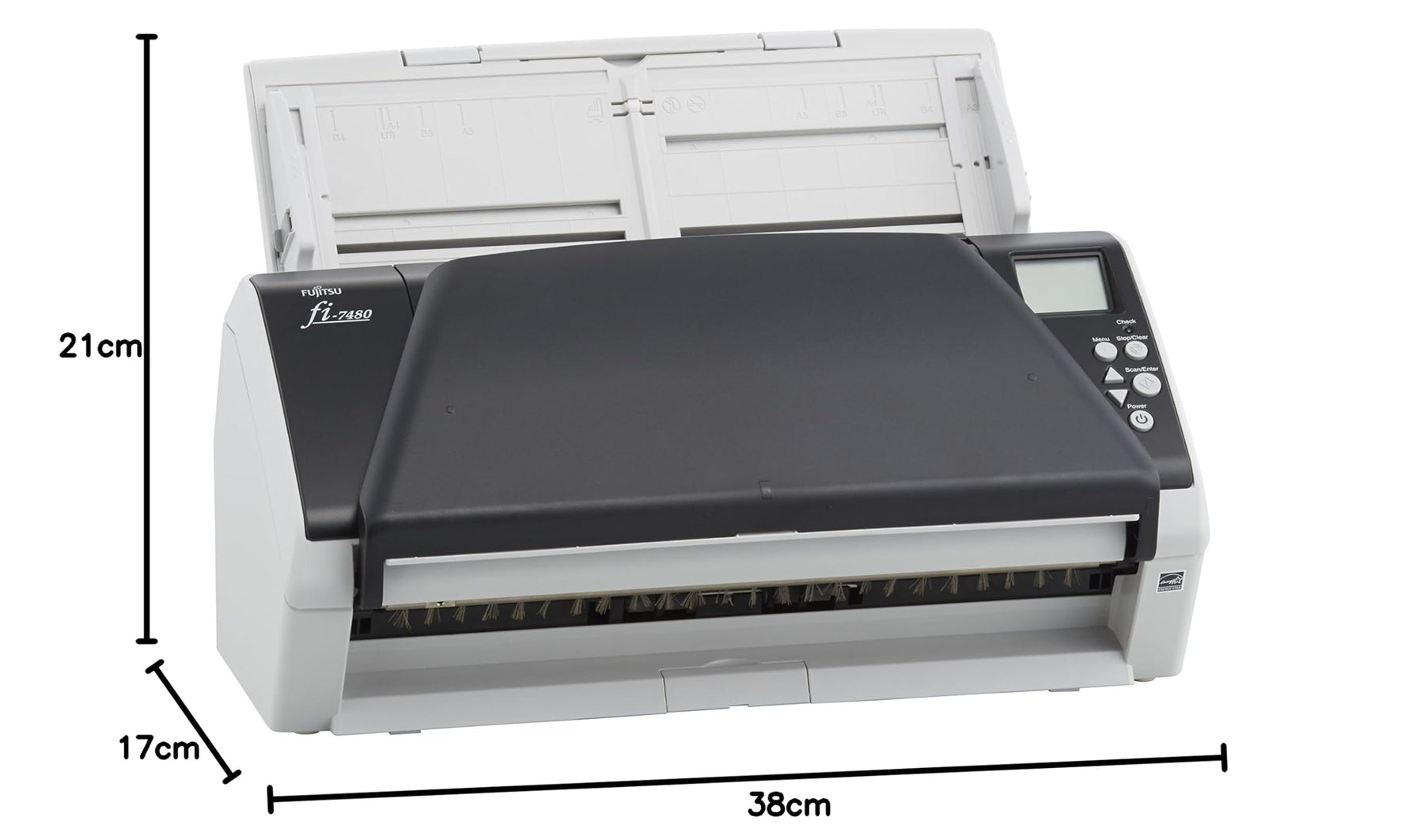 Der FI-7480 ist ein professioneller A3-Dokumentenscanner, der sich sowohl durch hohe Scangeschwindigkeiten als auch durch eine große Bandbreite von unterstützten Formaten auszeichnet. So lassen sich A4-Dokumente und -Bilder mit einer Geschwindigkeit von bis zu 80 Seiten bzw. 160 Seiten pro Minute verarbeiten. Insgesamt unterstützt der Scanner Vorlagen im Format A8 bis A3 und auch gefaltete A2- und A1-Dokumente. Durch den Papierkennungssensor lassen sich gemischte Belegstapel unterbrechnungsfrei scannen und müssen nicht zuvor sortiert werden.