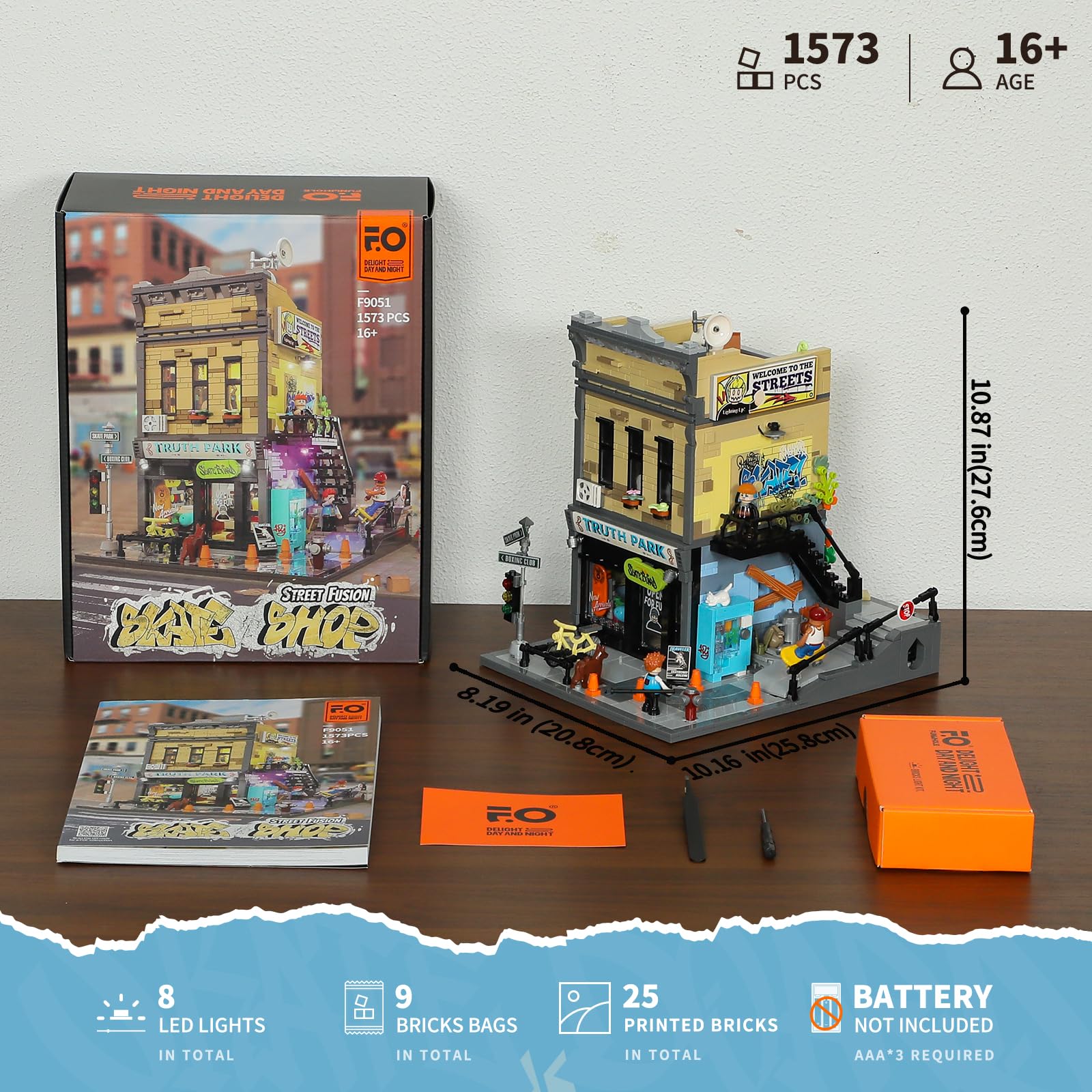 - 【Exklusive Beleuchtungselemente (Batterien nicht enthalten)】8 sorgfältig gestaltete beleuchtete Bereiche decken sowohl Innen- als auch Außenbereiche ab. Die Außen-Graffiti-Wand, beleuchtet durch violette Umgebungsbeleuchtung an der Gebäudeseite, schafft eine stilvolle und trendige Straßenatmosphäre.