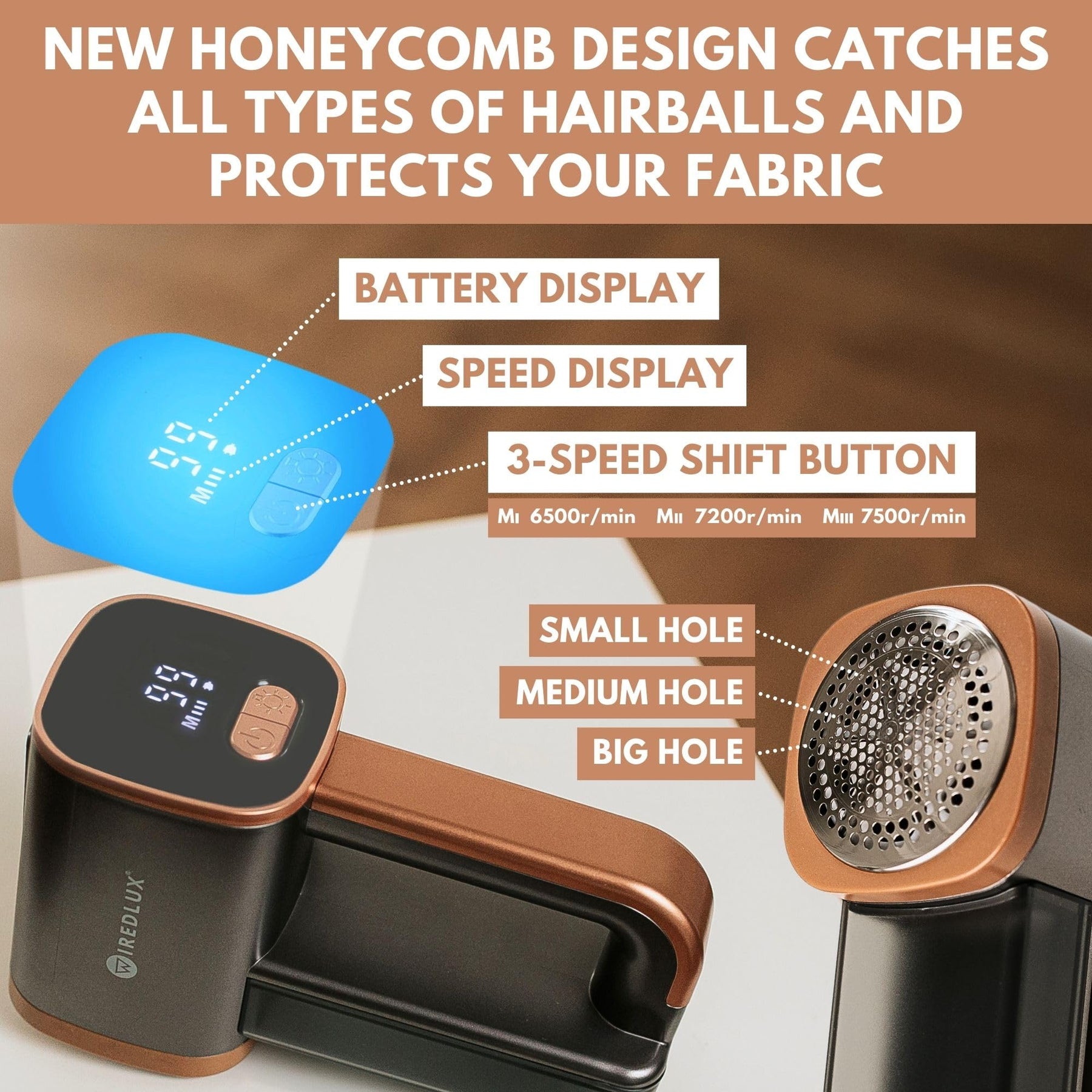 Fusselrasierer Elektrisch WiredLux - Wiederaufladbarer Fusselentferner für Kleidung & Möbel - LED-Licht, Einstellbare 3-Fach Geschwindigkeit, 6-blättrige Klinge, USB-Aufladung - Dual Protection
