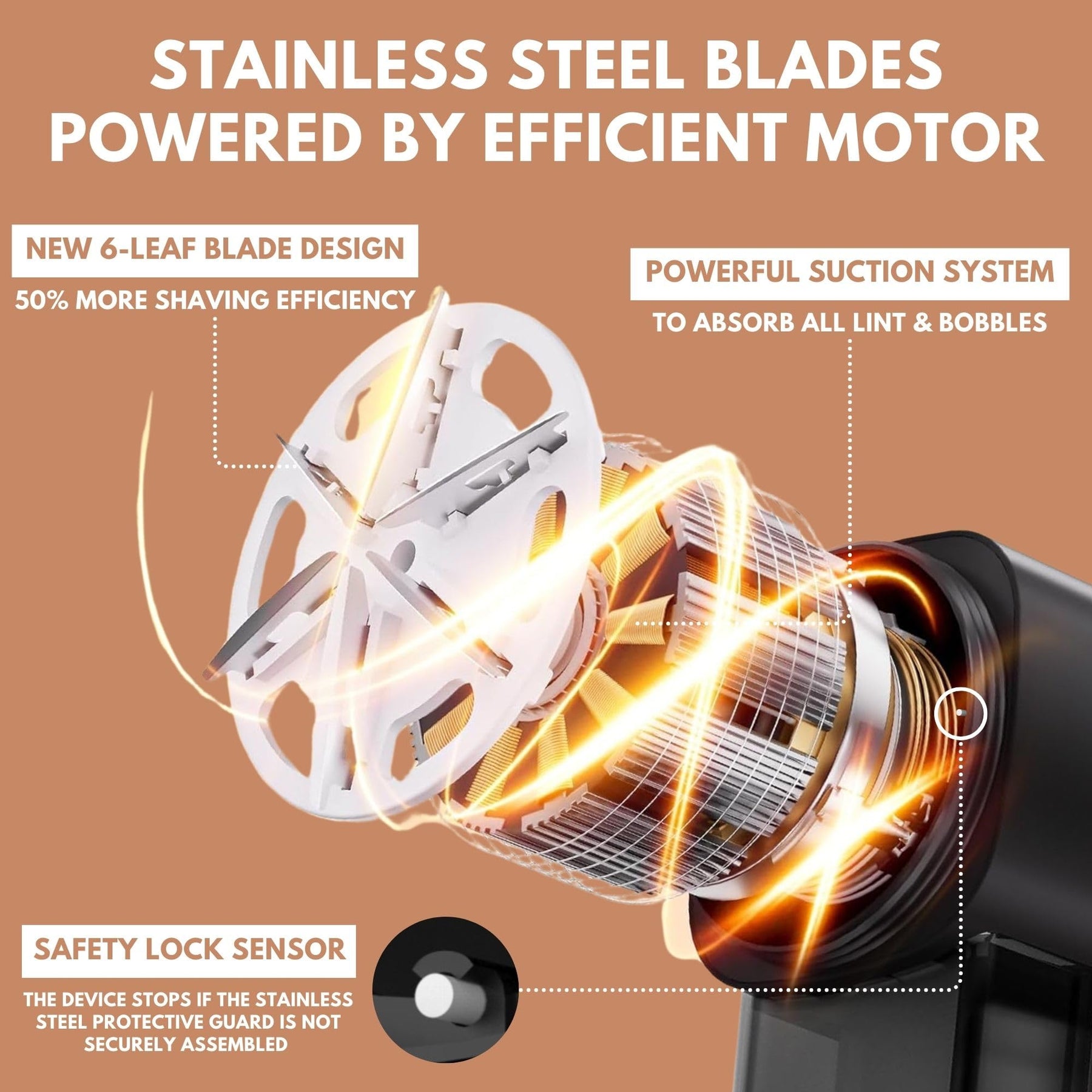 • 【LED-LICHT & EINFACH ZU BEDIENEN】 Die 6-blättrige Klinge aus rostfreiem Stahl entfernt Fusseln 50 % schneller als herkömmliche Klingen. Das große Rasierfeld und der ergonomische Griff ermöglichen eine einfache Abdeckung großer Flächen. Die LED-Anzeige zeigt den Batteriestand und die Geschwindigkeitsstufe an, und das integrierte LED-Licht hilft Ihnen, keine Fussel zu übersehen. Ein großer Auffangbehälter sammelt die Fusseln während des Gebrauchs für mehr Komfort.