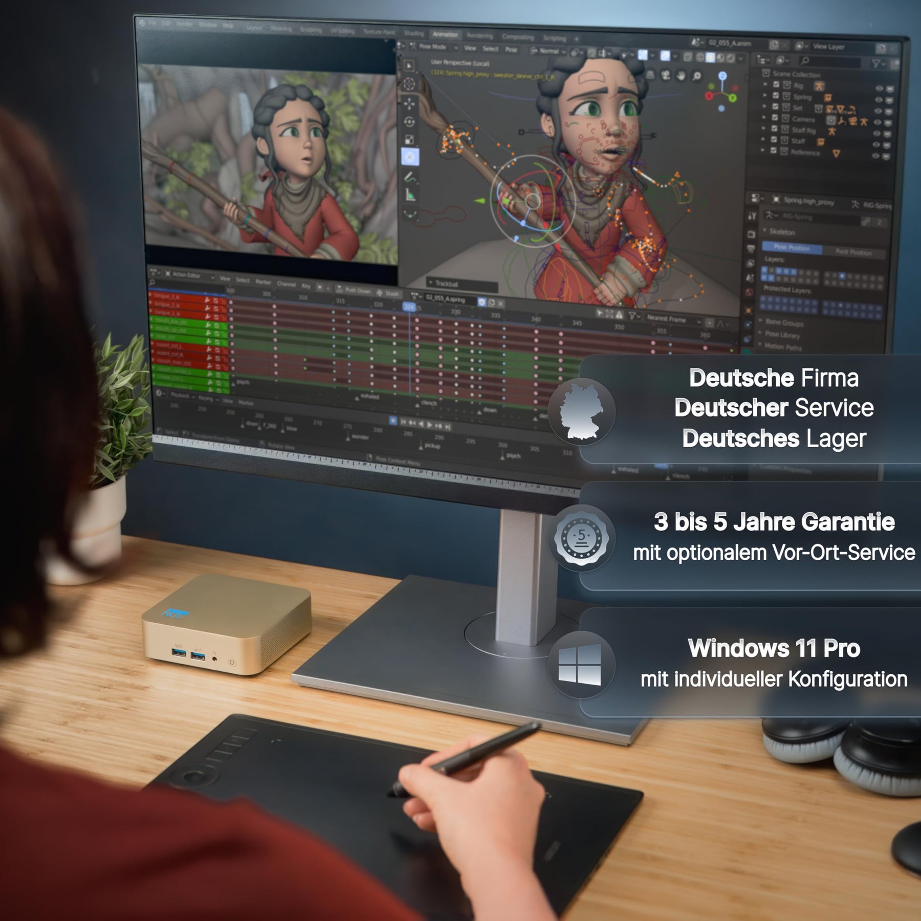 - SCHNELL, SICHER & EFFIZIENT – So edel wie der FutureNUC-LUX von außen aussieht so edel sind auch seine inneren Werte. Mit dem Dual Band Gigabit LAN (2,5 GB/s) und dem Intel WiFi 6E AX 211 bietet der FutureNUC Intel Mini PC die neuste drahtlose Verbindung und sorgt für eine schnelle und stabile Internetleistung beim Browsing, Streamig oder Gaming. Der kleine Mini-PC ist mit Intel Iris Xe Grafik ausgestattet und bietet eine atemberaubende 4K-UHD-Auflösung auf bis zu vier Bildschirmen.