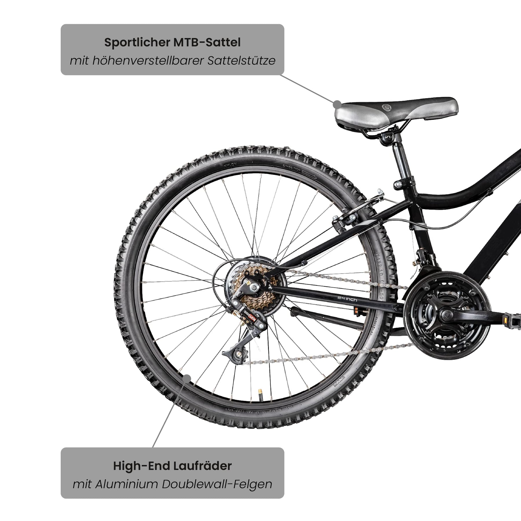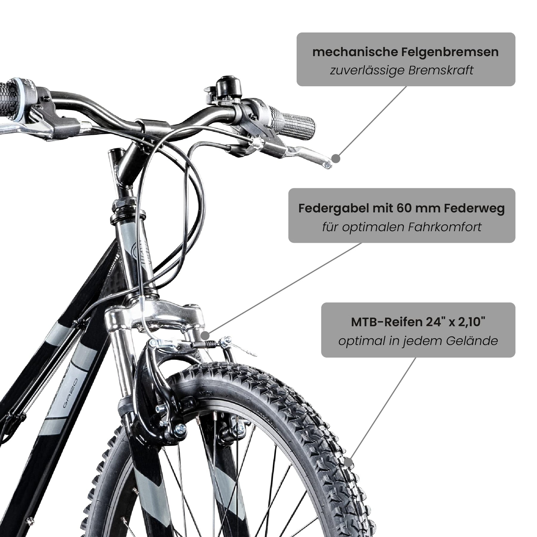 - robustes 24 Zoll Mountainbike für Kinder mit einer Körpergröße von 130-145 cm ab 8 Jahren