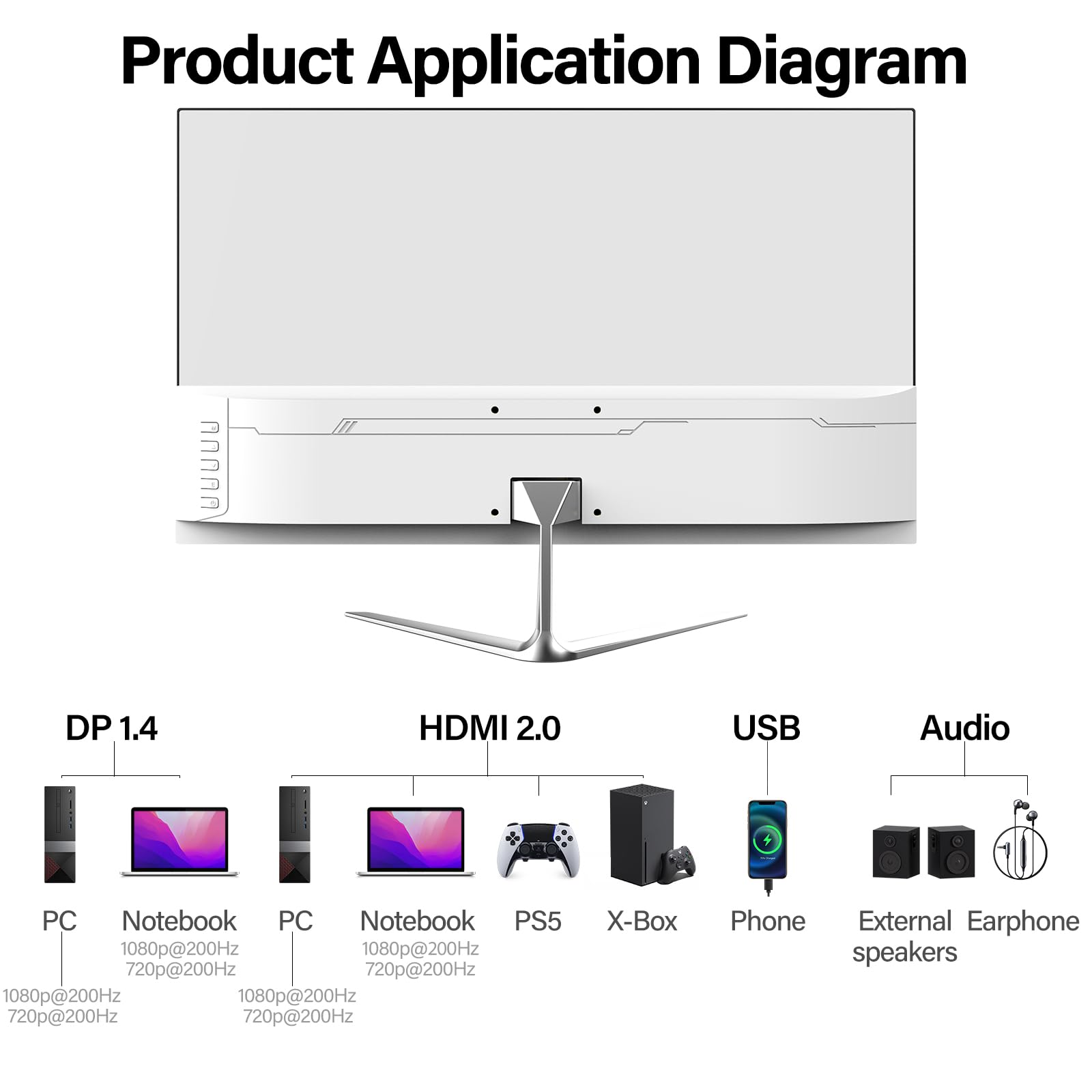 FLEXIBLE KONNEKTIVITÄT – Der Gawfolk Gaming Monitor bietet HDMI*1 und DisplayPort*1 Schnittstellen und ermöglicht den Anschluss an Xbox, PC, Laptops und mehr. Erleben Sie hochwertige Bildübertragung für einen nahtlosen Übergang zwischen Arbeit und Unterhaltung. Unterstützt HDMI (bis zu 120 Hz), DP (bis zu 200 Hz)