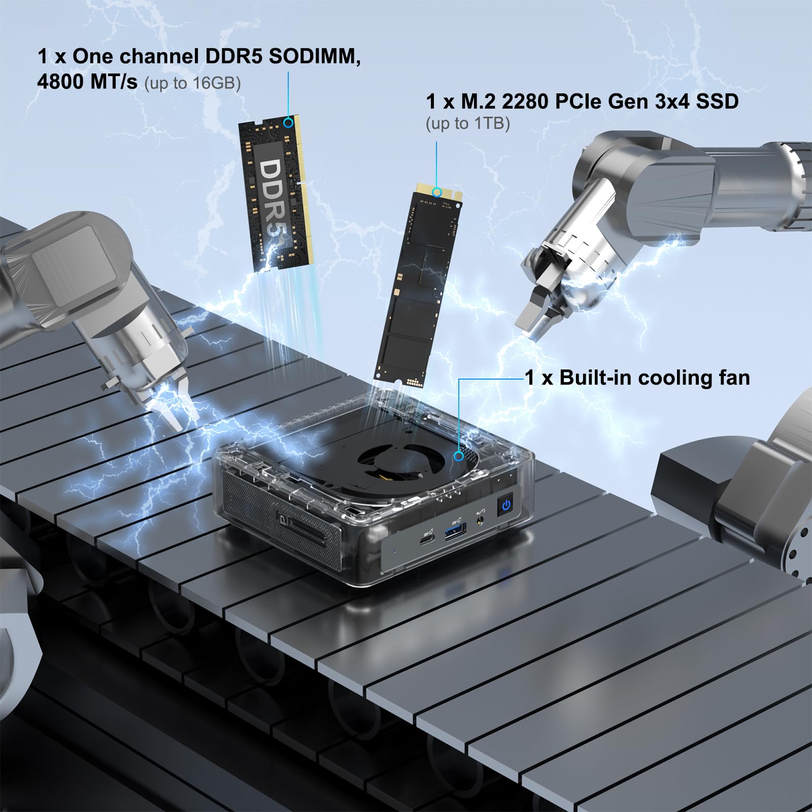 - [DDR5 & max. 16 GB RAM] – GEEKOM Mini Air12 N100 Mini PC NUC PC unterstützt bis zu 16 GB DDR5 RAM. Es verfügt außerdem über einen M.2 2280-Steckplatz für PCIe Gen3*4/2280 M.2 SATA SSD-Speicher (bis zu 1 TB). Sie haben die Möglichkeit, die Kapazität Ihres Desktop-Computers zu erweitern.