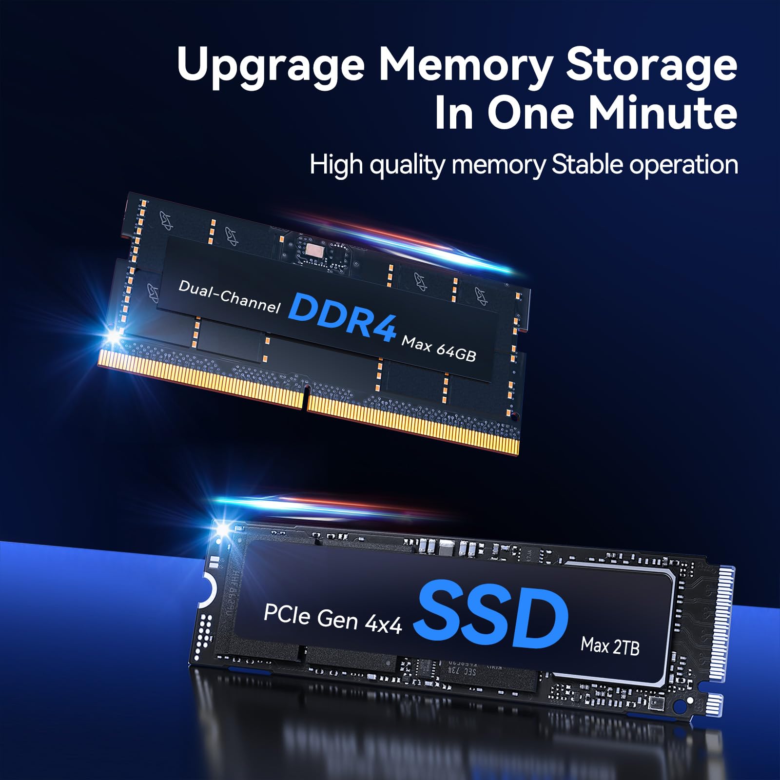 - SUPER SPEICHER – Der GEEKOM Mini Desktop PC verfügt über eine integrierte ultraschnelle M.2 PCIe 4.0 x 4 2280 NVMe SSD mit einer Kapazität von bis zu 2 TB! Sollte das noch nicht genug sein, bietet der Computer zusätzlich einen M.2 2242 SATA Steckplatz um eine weitere 1 TB SSD hinzuzufügen. Unterstützt bis zu 64 GB RAM dank Dual-Channel-DDR4-SODIMM-Steckplätzen. Sodass Sie Ihnen keine Sorgen um den Speicherplatz machen müssen.