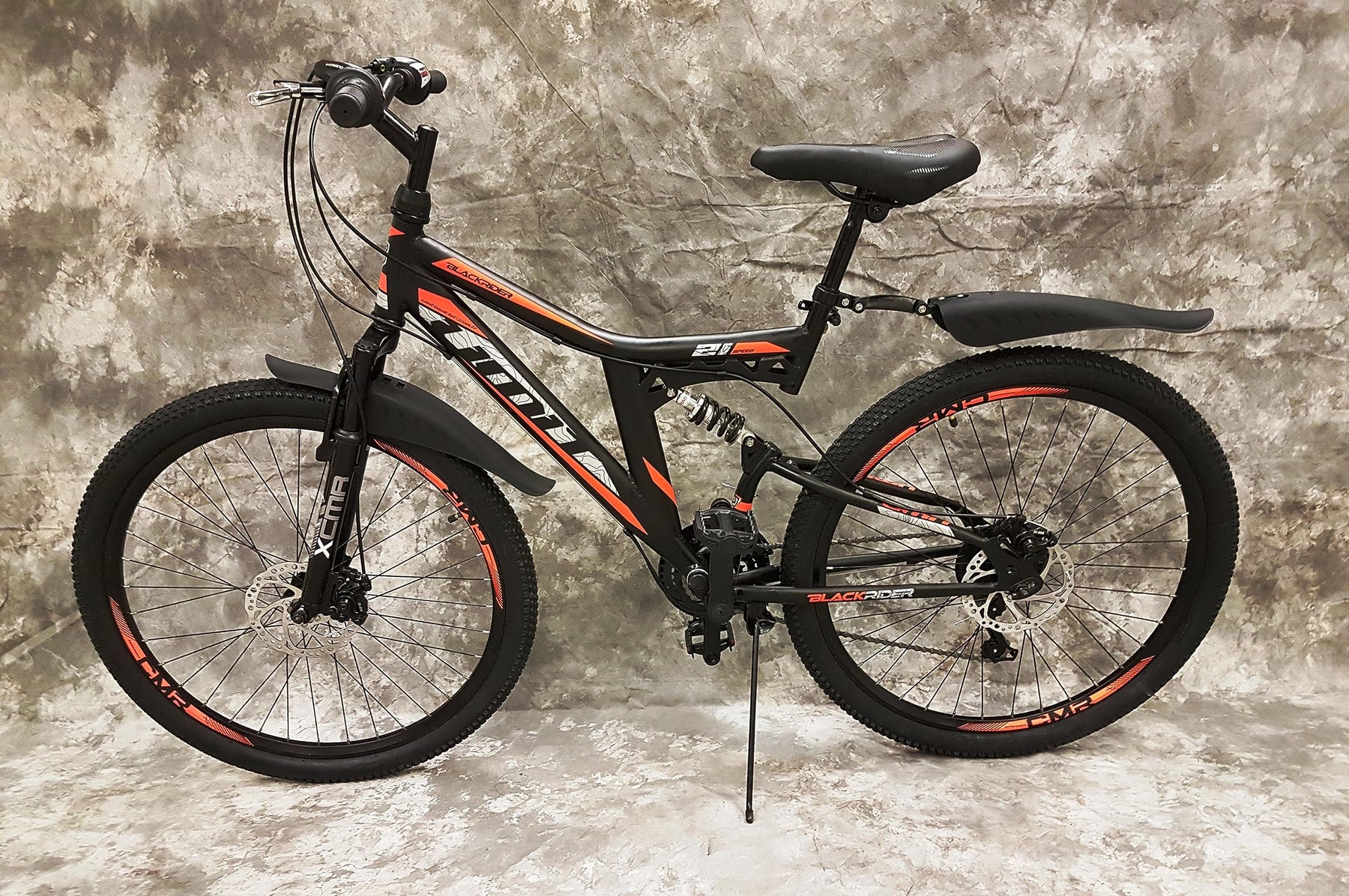 Einzelheiten: "BLACKRIDER" ein cooles Bike für die Leute von Heute. 26" SUPER MOUNTAINBIKE HI-TEN RAHMEN. mit 21-Gangschaltung & Scheibenbremsen. Für Jugendliche und Erwachsene bis zu !! 178 cm Körpergröße!! Wir bieten Ihnen hier ein vollgefedertes Markenmountainbike aus dem Hause Umit an. Dieses Mountainbike steht den großen Herrstellern in Nichts nach. Der Rahmen ist vollkommen alltagstauglich, hält aber auch stärkeren Beanspruchungen spielend stand. Die Rahmenfederung bietet Ihnen die Möglichkeit, das Fahrrad optimal auf ihr Bedürfnisse anzupassen. Durch die zusätzliche Gabelfederung werden auch stärkere Schläge problemlos abgefedert. Aufgrund der Drehgriffschaltung links und rechts am Lenker stehen 21-Gänge in jeder Situation zur Verfügung. Viele Markenkomponenten in Verbindung mit dem stabilen Rahmen sorgen für eine ausreichende Langlebigkeit. Dieses Mountainbike gehört wohl zu den coolsten sich am Markt befindlichen Fahrrädern dieser Preisklasse. TECHNISCHE DATEN: Rahmen: HI-TEN Größe: 26 Zoll Rahmenhöhe: 45cm Gewicht: ca. 17,5Kg Farbe: Schwarz-Orange -- Dekor weicht vom Foto ab Schaltwerk: RD-TY21 Zahnkranz: Index Schaltgriff: SL-RS36 Umwerfer: FD-TZ30 Kettenradgarnitur: KMC C30, Bremsen: Mechanische Scheibenbremsen Federung: Vorne & Hinten Gabel: HI-TEN gefedert Felgen: Aluminium Hohlkammer Reifen: 26 x 1,95 Schutzbleche: NEIN Lenkerbügel: Stahl Seitenständer: Ja Reflektoren: Nein WICHTIGE INFORMATIONEN Das Fahrrad wird zu 80 % vormontiert in eine Kartonage geliefert. Mit dem Ersteigern des Artikels erkennen Sie unsere allgemeinen Geschäftsbedingungen an. Bei vormontierten Fahrrädern erstreckt sich die Endmontage auch auf das Festziehen sämtlicher Schrauben und Muttern. Justierung der Schaltung und Bremsen, ggf. Einstellen der Kugellager und Zentrierung der Laufräder. Dies muss von Ihnen oder einem Fachmann vorgenommen werden. Bei Transportschäden bitte an uns wenden.