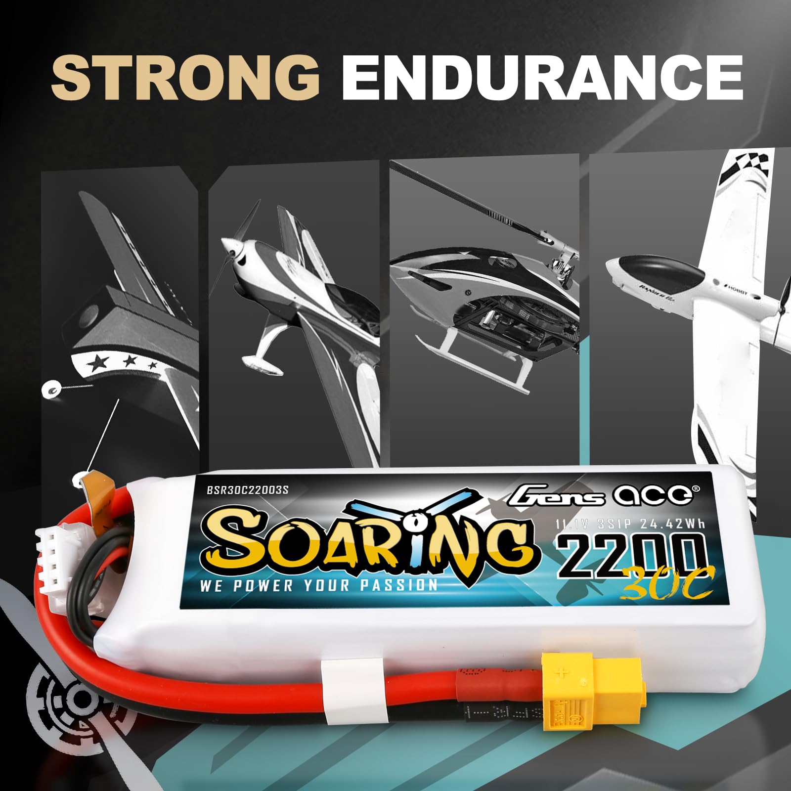 - Anwendungen——Gens Ace 11.1 V 2200mAh Lipo Akku mit voller Kapazität / langer Lebensdauer. Bietet eine hohe Leistung und eine sehr lange Lebensdauer für mittelgroße Crawler