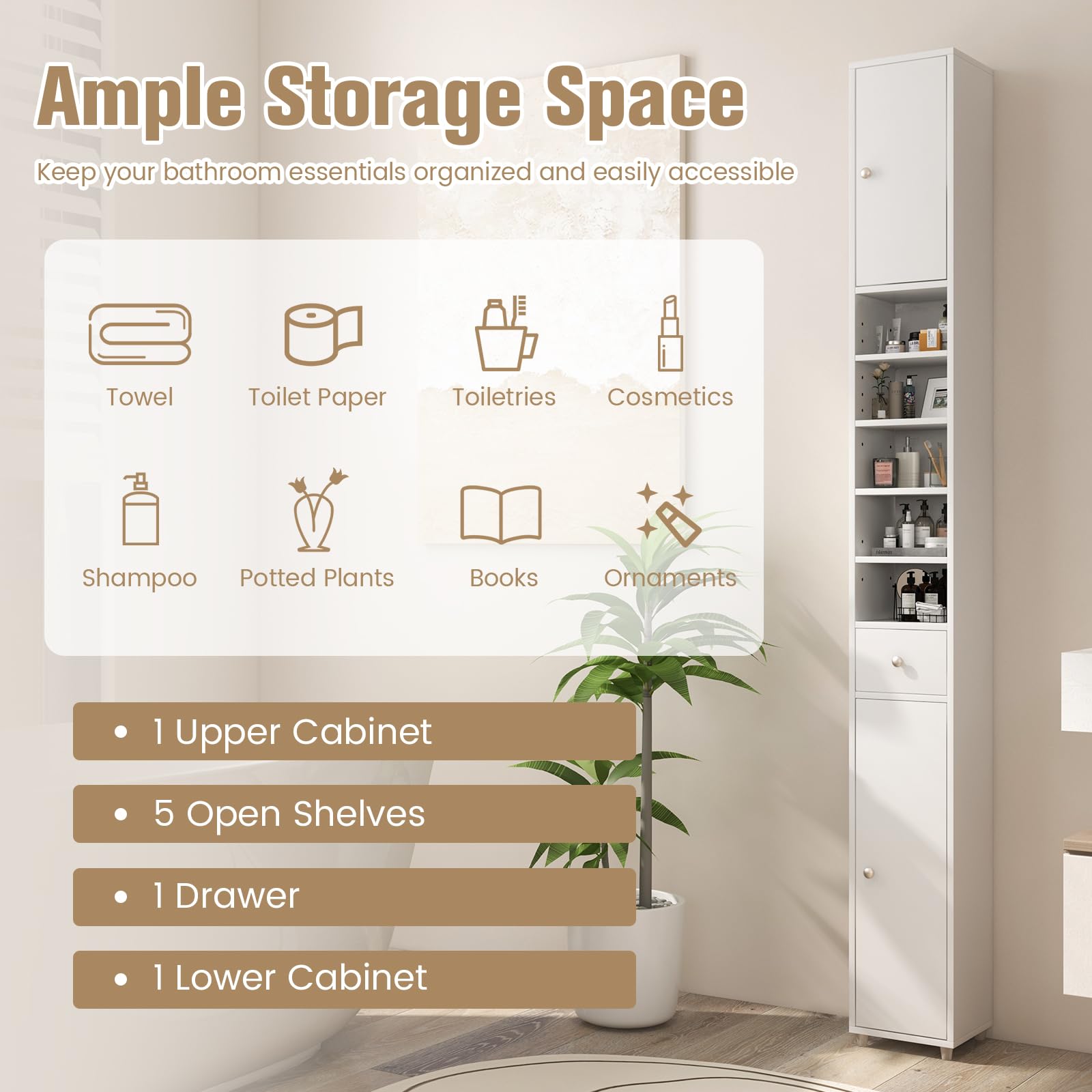• 💖 Platzsparendes Design - Dieser schmale Badschrank nutzt den vertikalen Raum aus, ist perfekt für kleine Räume mit begrenzten Aufbewahrungsmöglichkeiten. Neben der Verwendung als Badezimmerschrank dient er auch als Ausstellungsregal im Wohnzimmer usw.