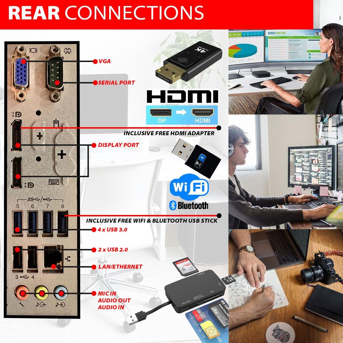 • Inklusive Kartenleser, WiFi 600 und Bluetooth 5 Adapter und 4K Ultra HD HDMI beiliegender Adapter