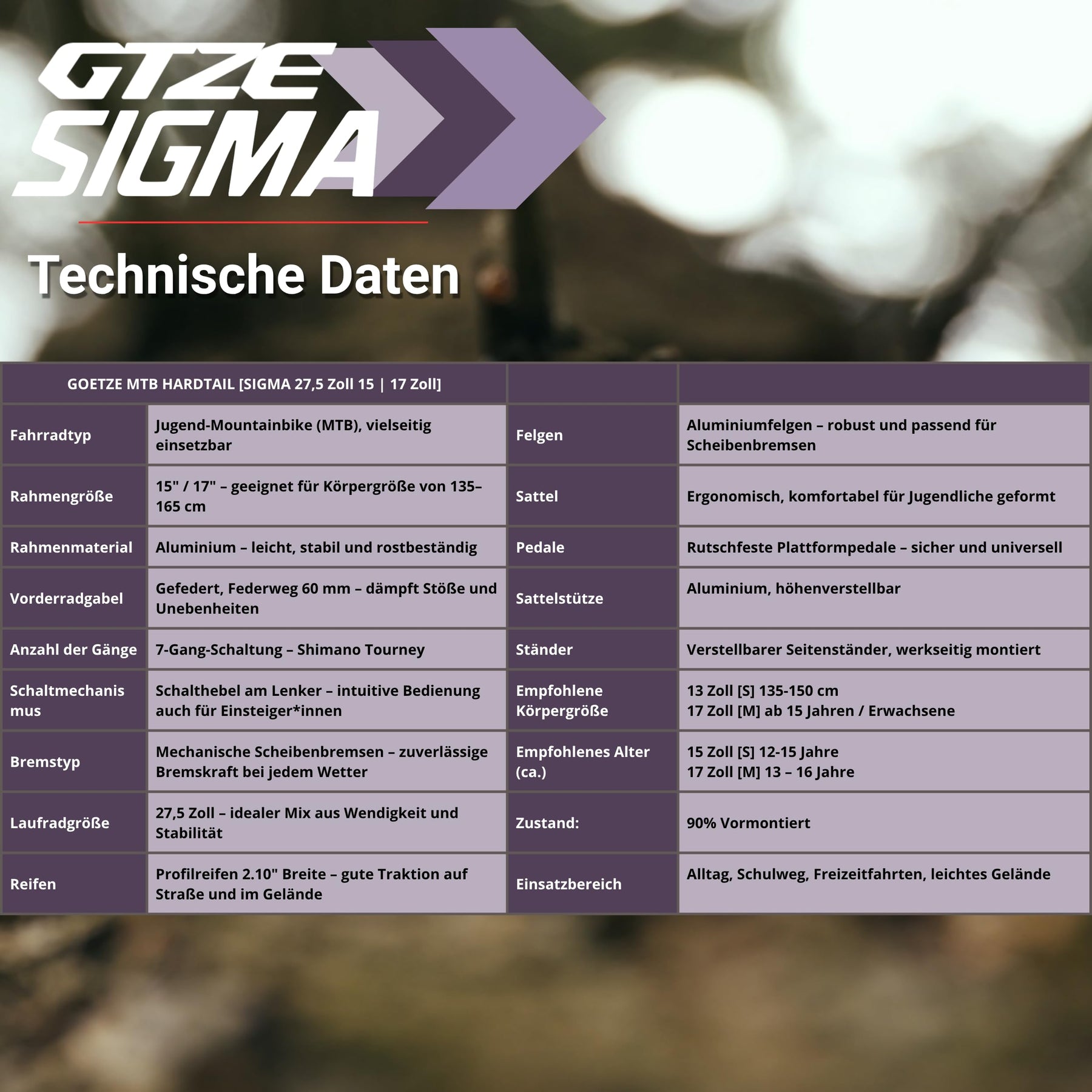Großes MTB mit 17-Zoll-Rahmenhöhe – Ideal für Fahrer:innen ab ca. 165 cm Körpergröße | Leichter, rostfreier Alurahmen für Alltag & Freizeit