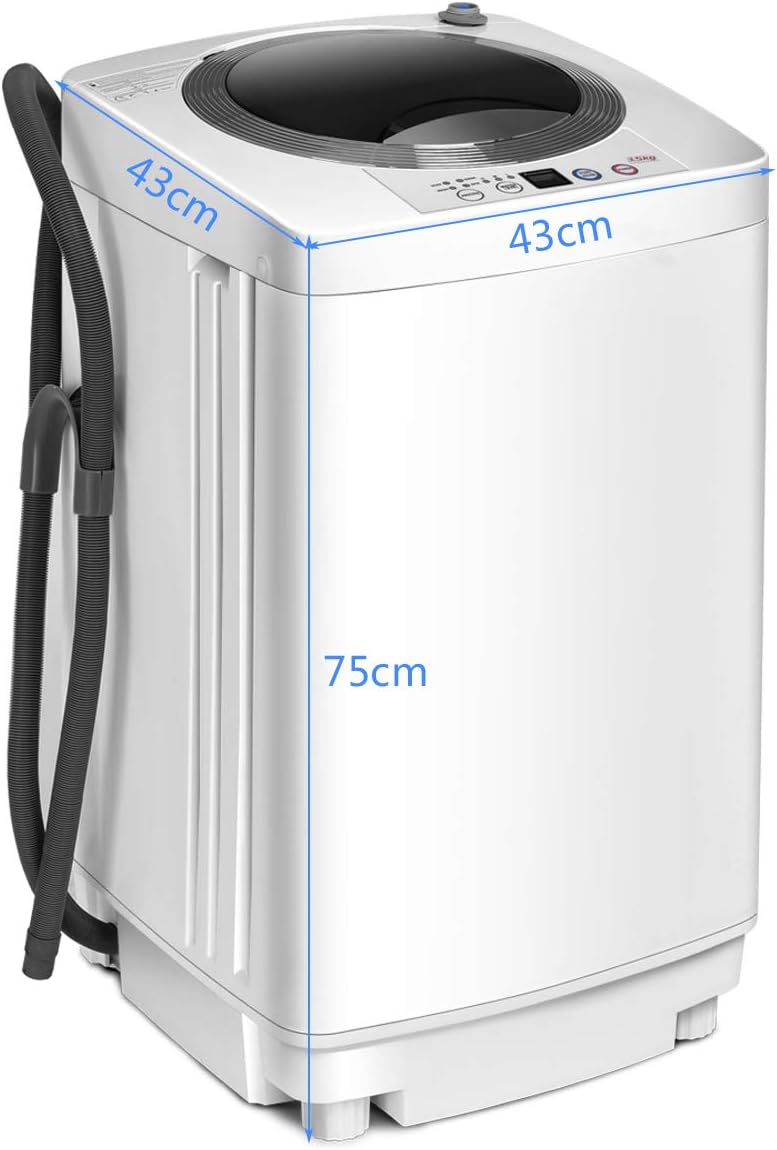 GOPLUS Mini Waschmaschine 3,5 KG, Waschvollautomat mit Schleuder, 6 Programme, Dispaly, inkl. Ablaufpumpe, Toplader Waschmaschine ideal für Apartments und Wohnmobile, 43 x 43 x 75 cm