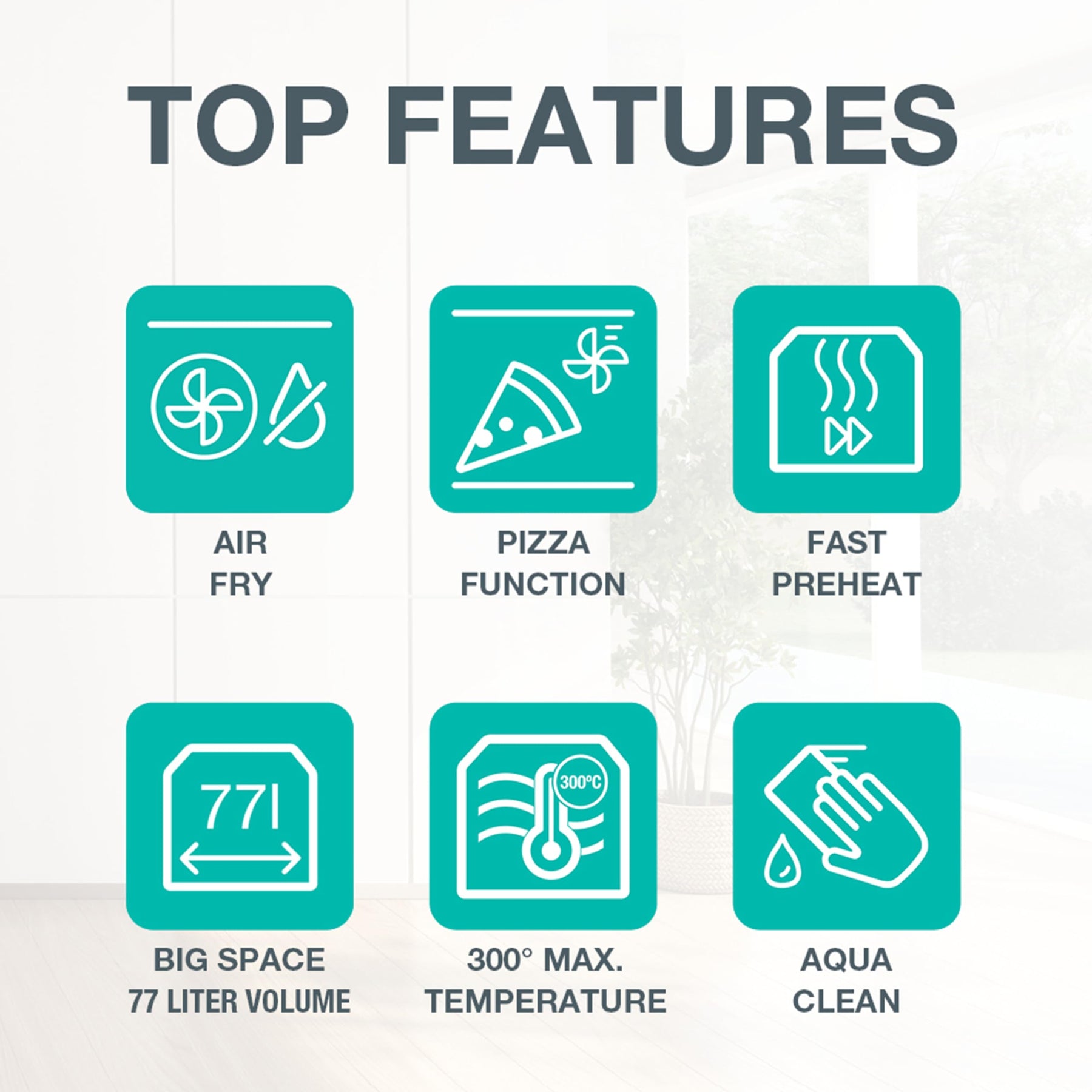 - 77 Liter Fassungsvermögen: Ideal für XXL-Rezepte. Die innovative Design-Lösung bietet einen größeren Innenraum und eine voll nutzbare Ofenbreite