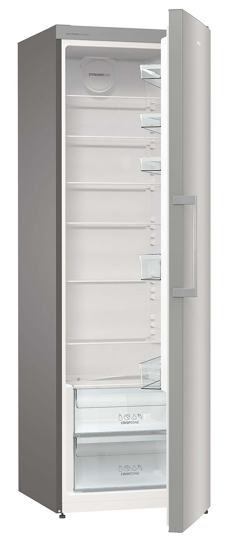 Gorenje R 619 EES5 Kühlschrank / 185cm / Umluft-Kühlsystem/Schnellkühlfunktion/Kühlteil 398 Liter/Inox Look, Silber
