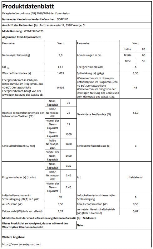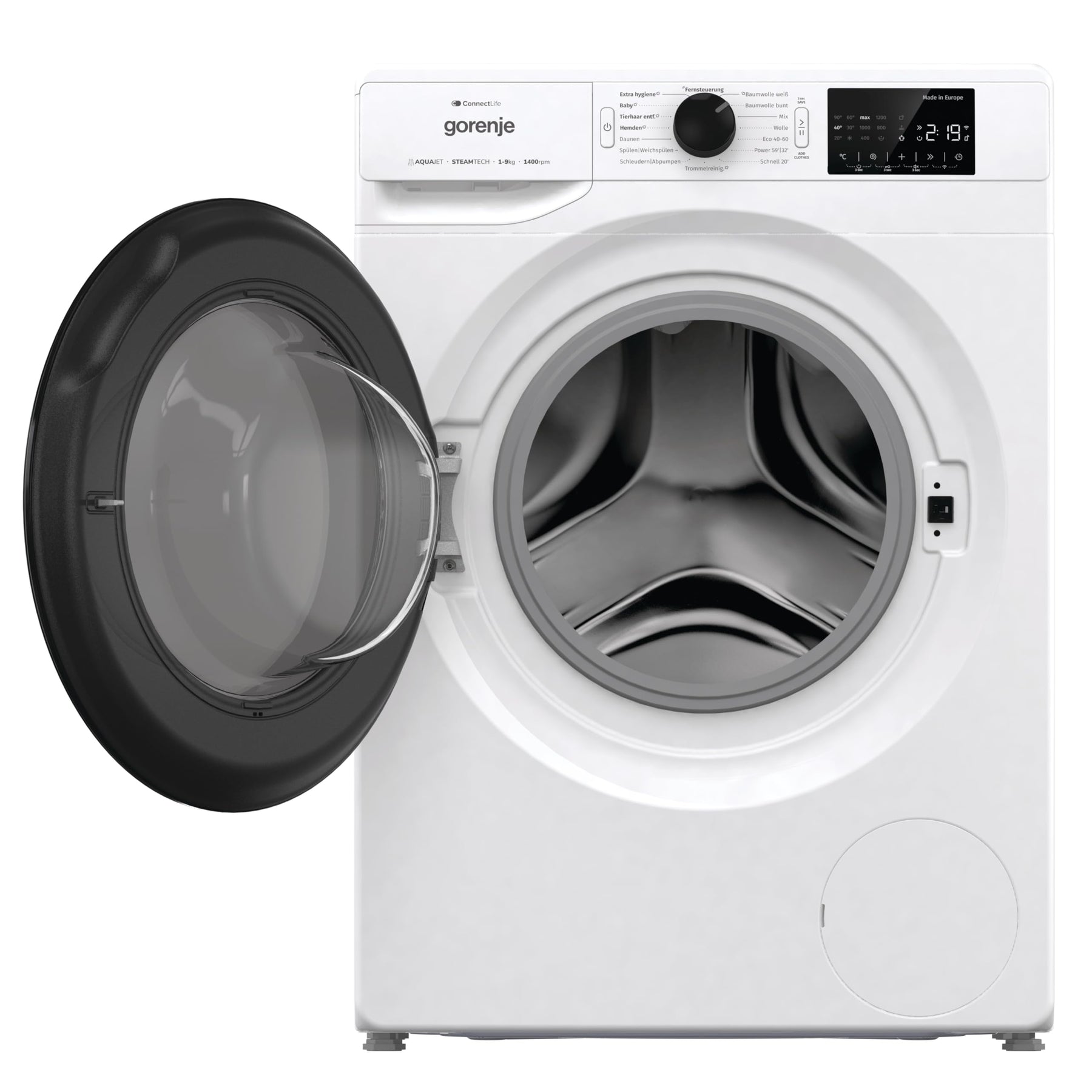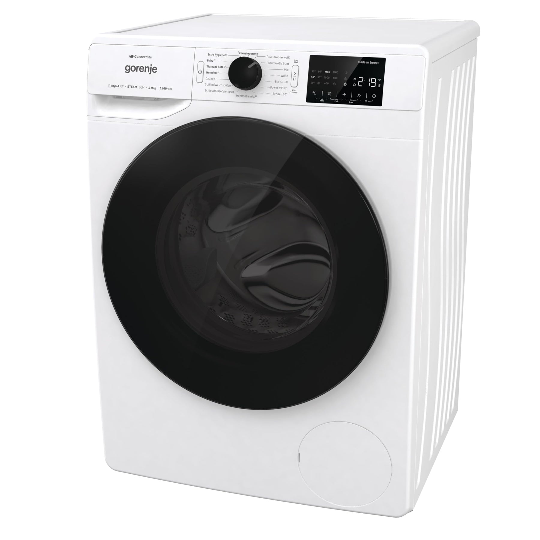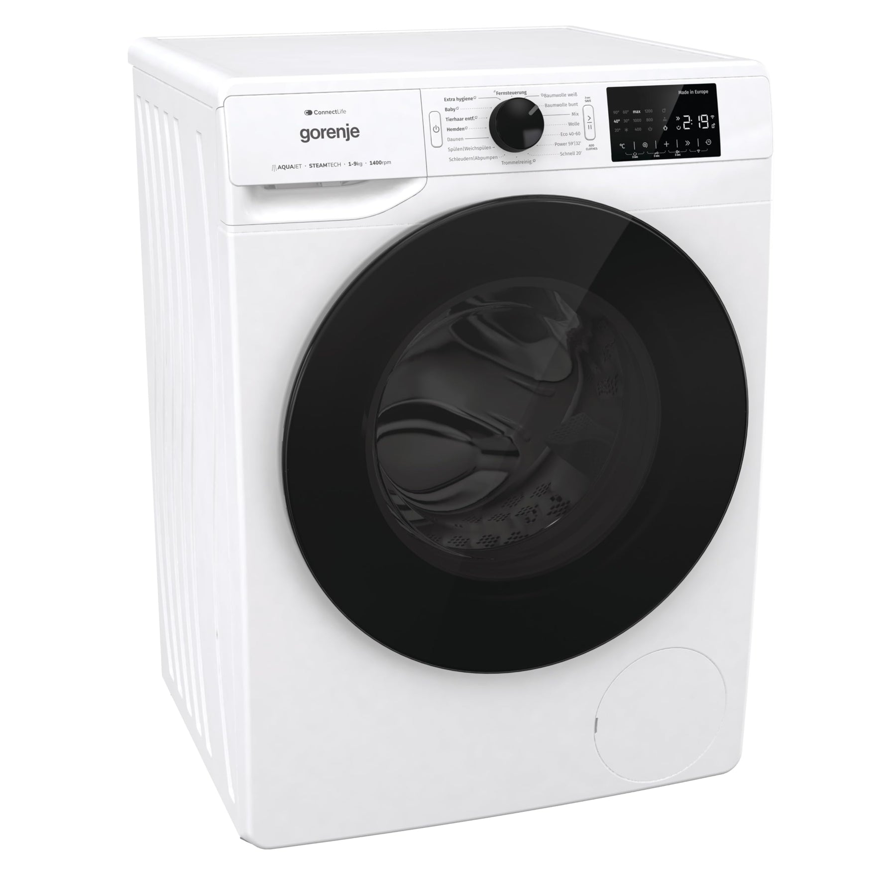 Einzelheiten: Gorenje WPNEI94DA1TS Waschmachine mit Dampffunktion/ ConnectLife / 9Kg / 1400 U/min / 15 Programme / Totaler AquaStop / WaveActive Trommel / ExtraHygiene / PowerWash / Schnell Waschgang / EEK: A-10%