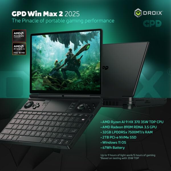 - Kraftvolle Leistung: Ausgestattet mit einem AMD Ryzen AI 9 HX 370-Prozessor mit 12 Kernen und 24 Threads, der eine Spitzengeschwindigkeit von 5,1 GHz erreicht, und einem AMD Radeon 890M-Grafikprozessor, der bis zu 2900 MHz erreicht, bietet der GPD WIN MAX 2 2025 Handheld-Gaming-PC eine Leistung der Desktop-Klasse in einem Handheld-Formfaktor, der reibungsloses Multitasking und High-Fidelity-Gaming für unterwegs gewährleistet.