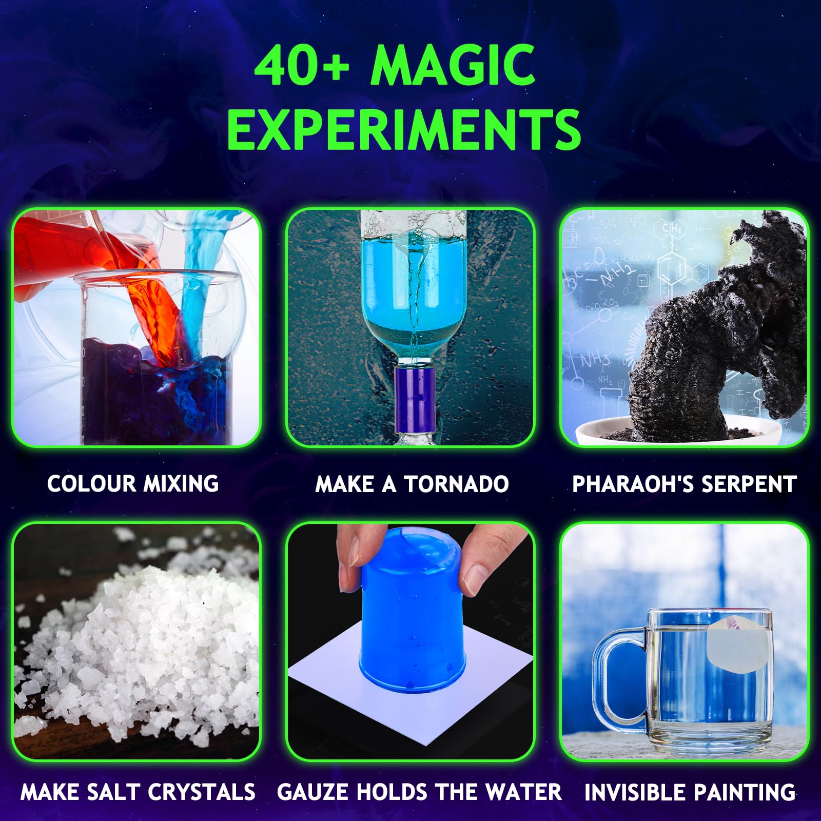 - Glow in the Dark Science Kit: Unser Wissenschafts-Kit enthält mehr als 30 einzigartige leuchtende Experimente, mit sicheren Leuchtpigmenten, die es den Experimenten ermöglichen, Kinderaugen in Form von Leuchten schnell zu fangen, die starke Neugier zu stimulieren und ihr Interesse an der Wissenschaft zu fördern. Es gibt auch eine Auswahl von mehr als 40 erstaunlichen Chemie-Experimenten, Kinder werden einen ganzen Tag wissenschaftlicher Erkundung beginnen!