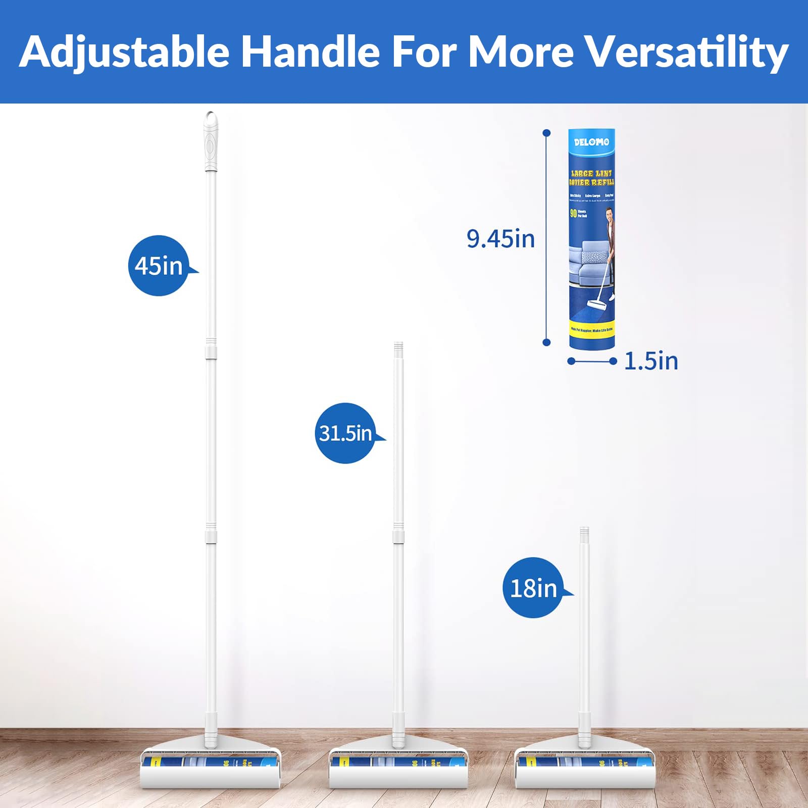- Große Fusselrolle: Verfügt über eine nachfüllbare Fusselrolle mit 360 Klebeblättern und eine 24 cm breite Rollenfläche, die 15,2 cm länger ist als ein Standard-Fusselroller. Speziell für die meisten großen Fusselrollen auf dem Markt entwickelt (25,4 cm breit, Innendurchmesser bei 5,1 cm). Stecken Sie einfach diese hochwertigen Nachfüllrollen in die Rolle und Sie können loslegenDie Nachfüllpackung verfügt über eine unglaubliche 24 cm breite Flächenabdeckung, ideal für Anwendungen mit großen Flächen: Teppiche, Hartböden, Sofa, Bett und vieles mehr
