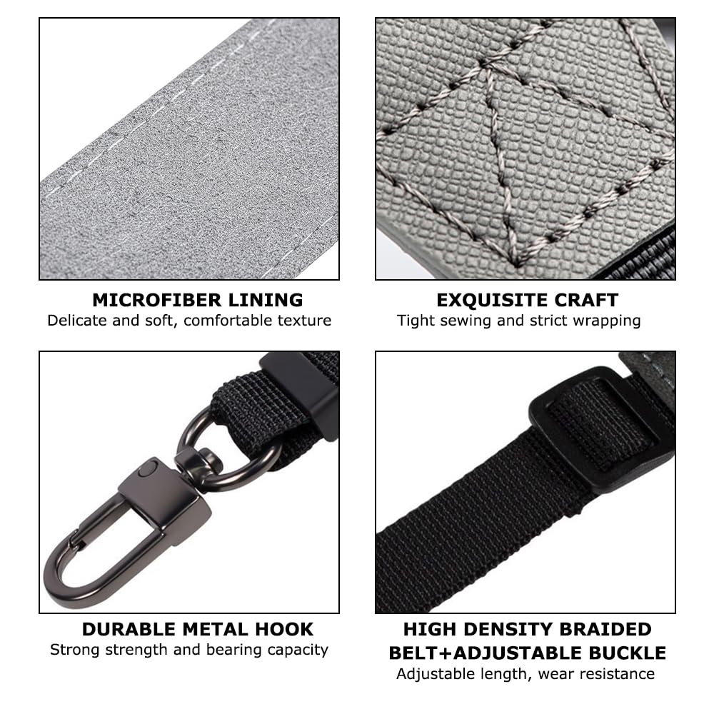 - L-förmige, barrierefreie 90°-Aufhängung behindert oder beeinträchtigt die normale Verwendung der Fernbedienung nicht, verdeckt nicht die Bildschirmwippe und alle Tasten, so dass Sie Ihre Hände frei haben und die Landschaft genießen können, wenn Sie es leid sind, eine schwere Last zu tragen.