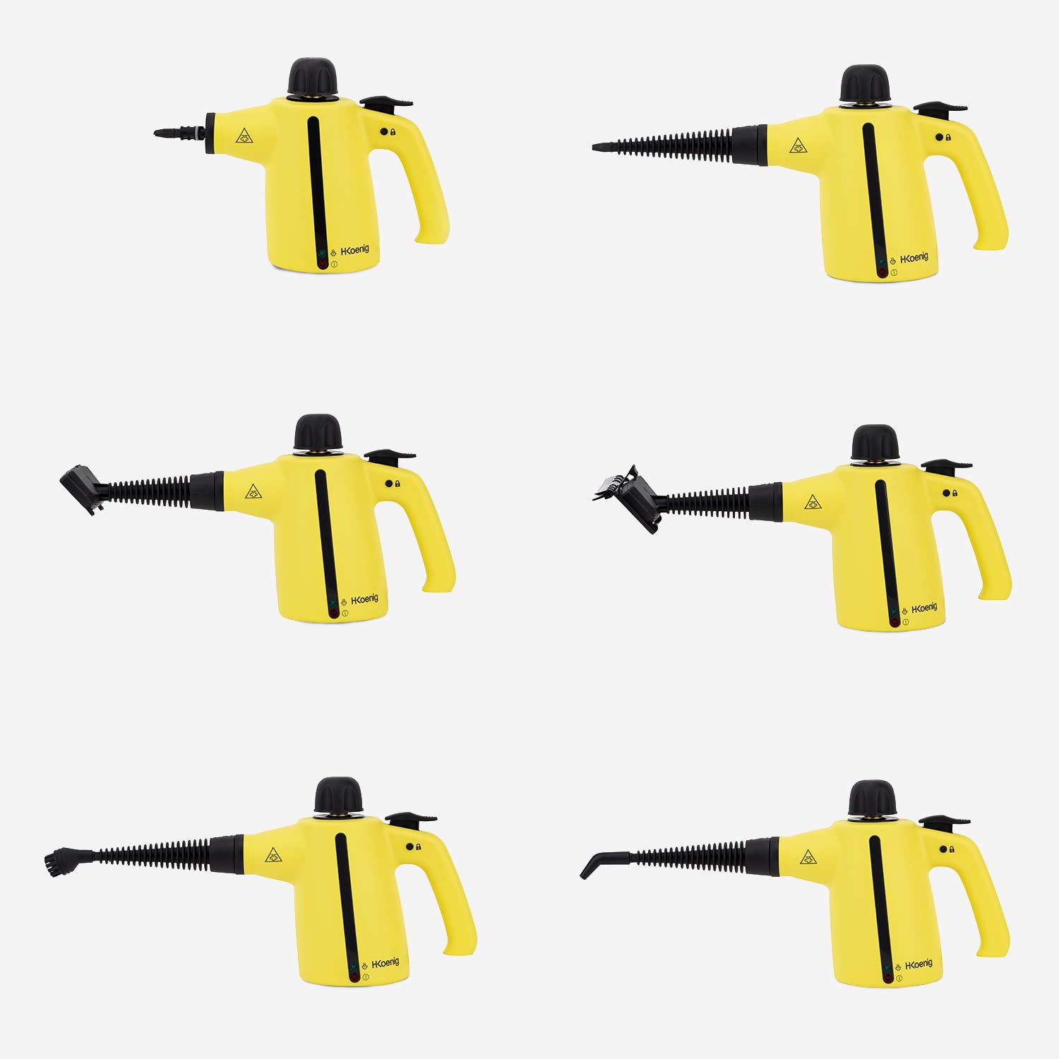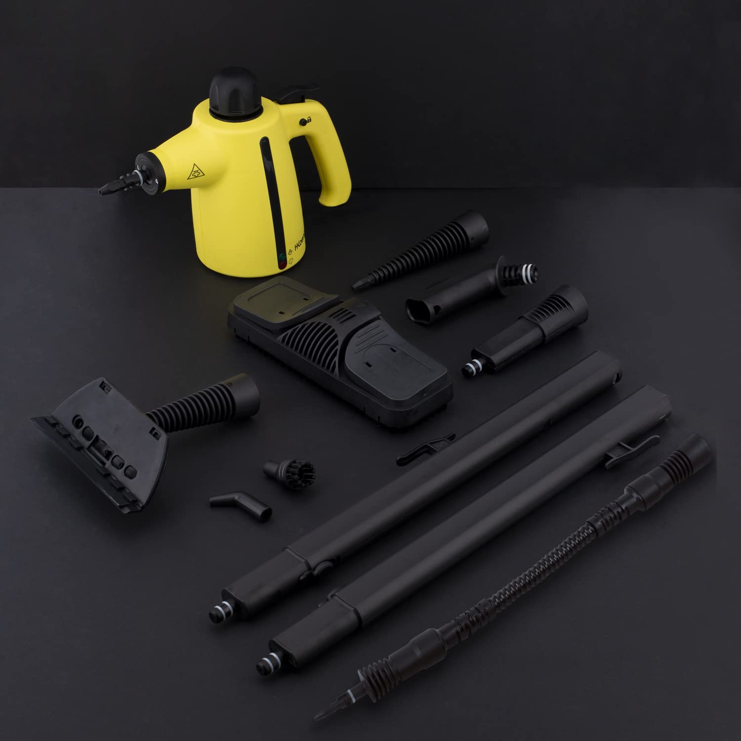 - [KOMPLETTES ZUBEHÖR]: Im Lieferumfang enthalten sind ein flexibles Rohr, eine Bodenbürste, eine runde Nylonbürste, eine rechteckige Bürste, eine Dampfdüse, eine abgewinkelte Sprühdüse, 2 Verlängerungen, 2 Verbindungsstücke, ein Fensterabzieher, ein Bodentuch, ein Trichter und ein Messbecher. Dieses Zubehör bietet Ihnen eine optimale Vielseitigkeit für verschiedene Anwendungen.