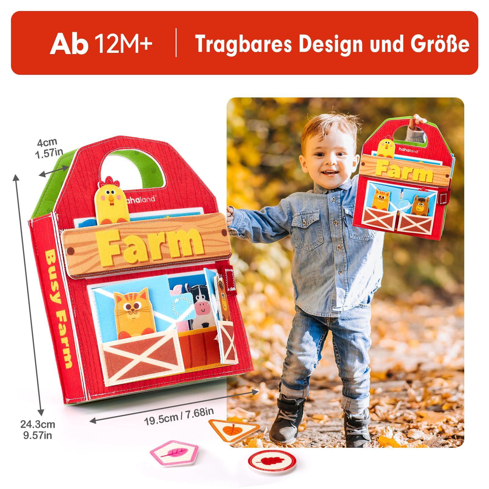 - 【Bildung durch Spaß】: Die Funktionen der Busy Board, Busy Book und Quiet book ab 1 Jahr werden kombiniert, um umfassendes Lernen und Unterhaltung zu bieten.Von frühkindlichen Bildungsinhalten wie dem Erkennen von Tieren, Gemüse, Farben und Zahlen bis hin zum Erleben von Lebenskompetenzen anhand von Knöpfen und Klettverschlüssen, Verstecken, Handpuppenspielzeug sorgen für eine reichhaltige 3D-Interaktion mit einer Bauernhof.