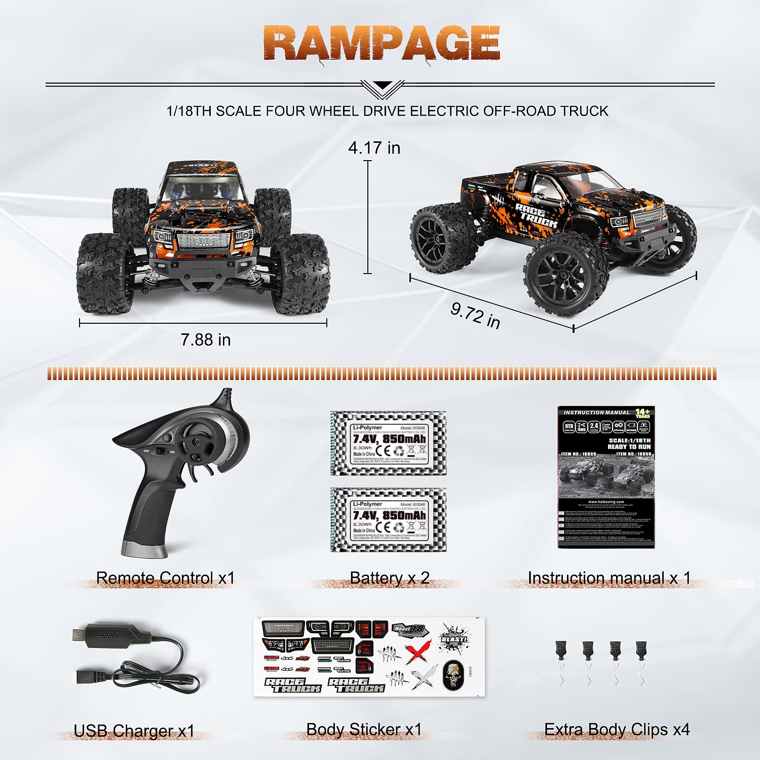 - 【Hochgeschwindigkeits RC Auto】 Dieser Allradantrieb Hoch Geschwindigkeit Ferngesteuertes Geländewagen ist mit hochwertigen und langlebigen Komponenten ausgestattet,mit Ganzmetallgedichtetes Kugellager undMetall-Hundeknochen. Das Ferngesteuertes Auto kann mit einem Hochgeschwindigkeitsmotor von höchster Qualität bis zu 36 km/h erreichen. aber leistungsstarke Truck bietet Ihnen ein realistisches Renn- und Offroad-Spielerlebnis, Es ist ein großartiger Monster Truck für Anfänger.