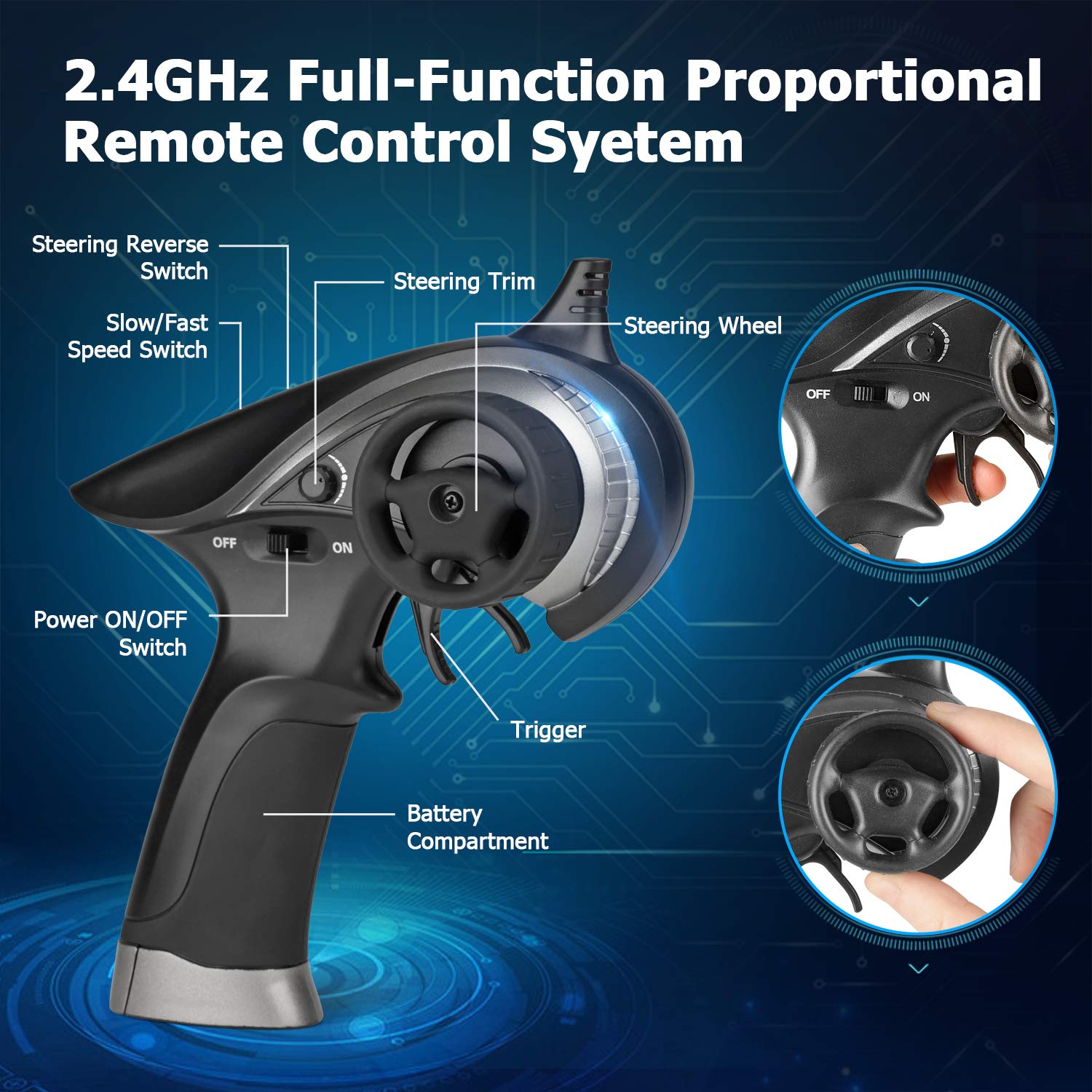 - 【2,4GHz Funksteuerung und ferngesteuertes auto wasserdicht】 2,4-GHz-Vollsynchronfernsteuerungssystem. Vollgas / Lenkung. 60-80 Meter Kontrollentfernung.Sie und Ihre Freunde können den Buggy störungsfrei fahren und treiben lassen. Level Semi-Waterproof schützt die RC-Trucks vor Spritzwasser und Wellen. (Trocknen und reinigen Sie Ihr Fahrzeug sofort danach, um Ihre Langzeitleistung zu maximieren.)