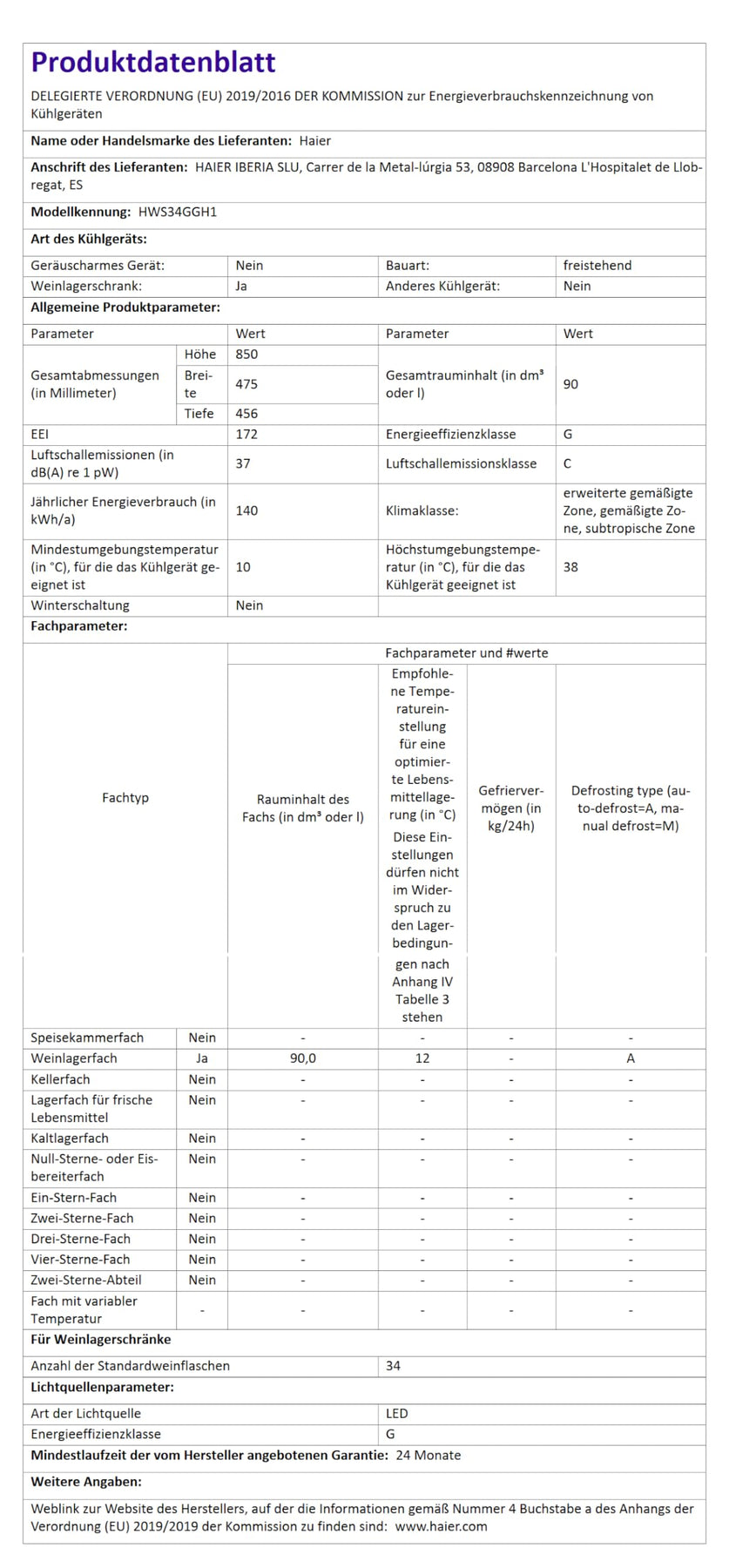 Einzelheiten: Haier Winebank 50 Serie 3 HWS34GGH1