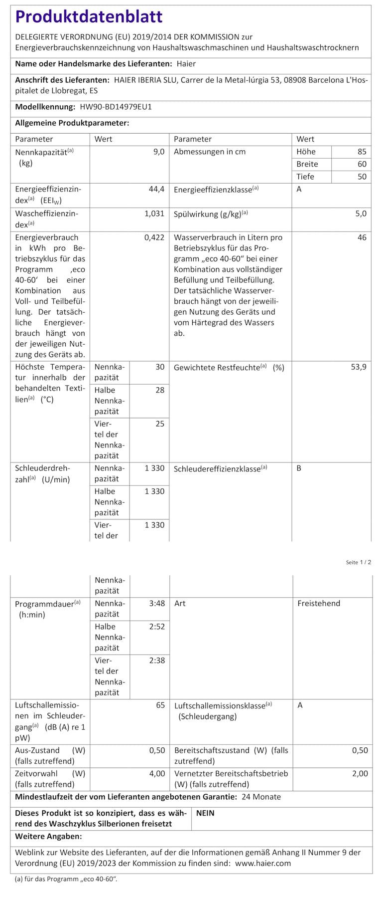 Einzelheiten: Haier I-PRO SERIE 7 PLUS HW90-BD14979EU1 Waschmaschine