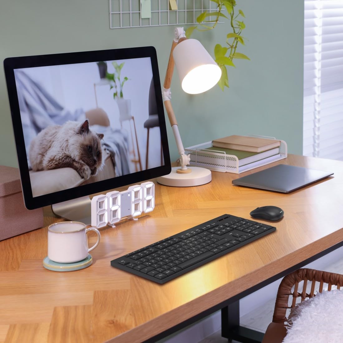 - Wireless Keyboard für ergonomisches Tippgefühl: verstellbarer Neigungswinkel, leise Tasten, separate Multimedia Tasten, FN Lock Funktion zum Tausch der Erst- und Zweitbelegung der F-Tasten, Plug & Play