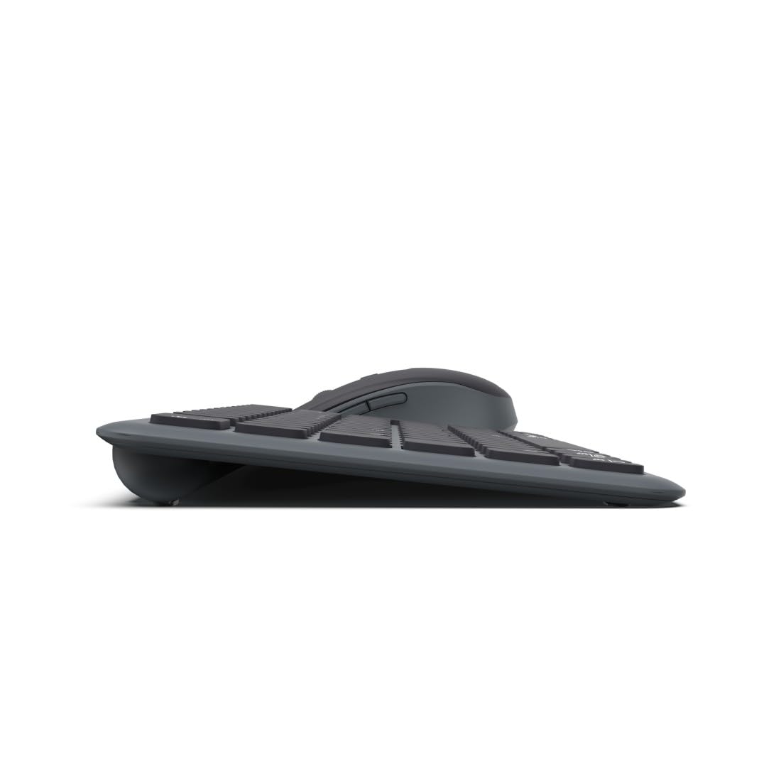 Multi Device ist die Devise: Die Bluetooth Tastatur mit Funk und die Bluetooth Maus mit Funk verbinden sich gleichzeitig mit bis zu 3 Geräten wie Smartphone, Tablet und PC. Dabei stehen 1 Funk und 2 Bluetooth Kanäle zu Verfügung. Das Tastatur Maus Set ohne Kabel arbeitet mit einer zuverlässigen Bluetooth- und 2,4-GHz-Funktechnologie mit einer Reichweite von 10 Metern (abhängig von Nutzungs- und Umgebungsbedingungen). Die langlebigen und robusten Scissortasten eignen sich ideal für flüssiges, intuitives und geräuscharmes Tippen – auch, wenn es mal wieder schnell gehen muss. Die konkav geformten Tastenkappen führen die Fingerkuppen dabei mühelos. Die 75%-Tastatur ohne Ziffernblock verfügt über eine Assist-Taste, die den programmübergreifenden KI-Assistenten aktiviert, sofern dieser installiert ist. Zusätzlich gibt es separate Multimedia-Tasten zur einfachen Steuerung der Wiedergabe, egal ob Musik, Live Stream oder Video. Hierfür tauscht man mit der FN-Lock-Funktion ganz einfach die Erst- und Zweitbelegung der Tasten F1 bis F12. Die kabellose Maus verfügt über seitliche Browser-Tasten zum einfachen Navigieren sowie einen dpi-Schalter. Dank flüsterleiser Tasten arbeitet die Wireless Maus ohne Klickgeräusch. Der USB A Empfänger kann zum sicheren Transport im Tastatur- oder Mausgehäuse verstaut werden. Das Wireless Set wird mit Batterien betrieben – kein lästiges Umstecken, kein Aufladen. Zudem verfügen kabellose Maus und Tastatur über einen separaten Ein-/Ausschalter und schalten sich nach fünf Minuten Inaktivität automatisch in einen energiesparenden Standby Modus. Es handelt sich um ein deutsches Tastaturlayout. Gehäuse und Tasten der drahtlosen Tastatur und Maus bestehen zu 65% aus recyceltem ABS-Kunststoff.