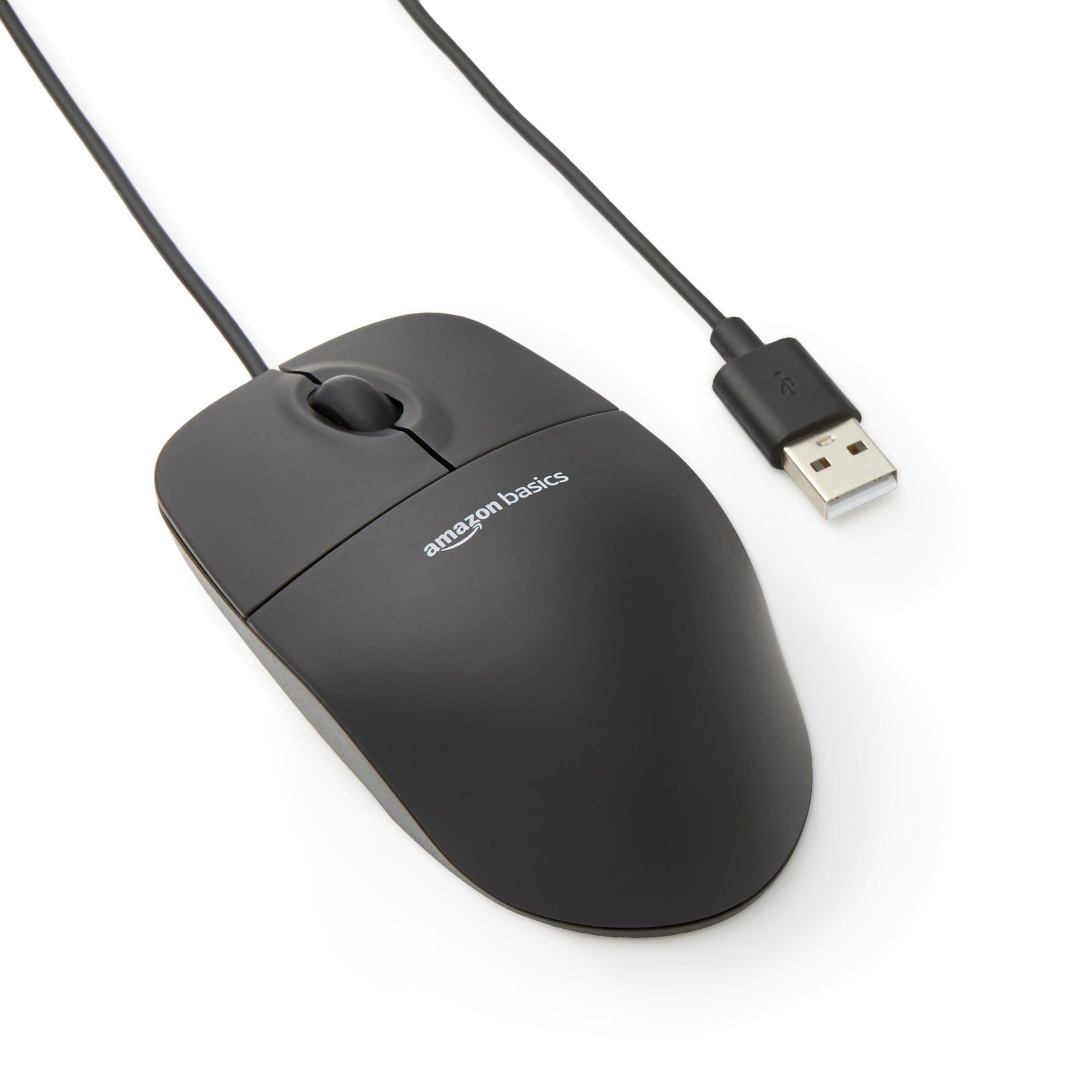 Amazon Basics - Optische Maus mit 3 Tasten und USB-Anschluss für Windows und Mac OS X, 1 Stück, Schwarz