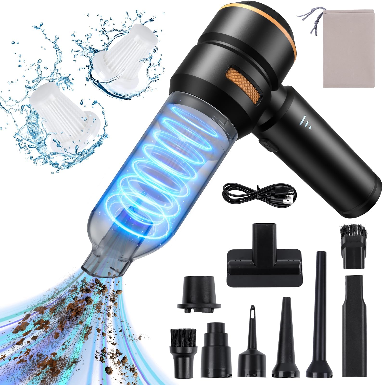 - 【Weiter Anwendungsbereich】Mini kabelloser handstaubsauger ist mit mehreren saugdüsen ausgestattet, die je nach bedarf verwendet werden können, blasen, saugen, pumpen, etc. 20000PA starke saugkraft, höhere reinigungseffizienz. Geeignet für die reinigung von schiebetürschienen, fenstern, schubladen, computer-hauptrechnern, autoinnenräumen, sofas, tastaturen und mehr. Er kann auch als Haartrockner oder luftpumpe verwendet werden, um das fell Ihres haustiers zu trocknen, holzkohlefeuer zu machen und aufblasbare Produkte aufzupumpen.