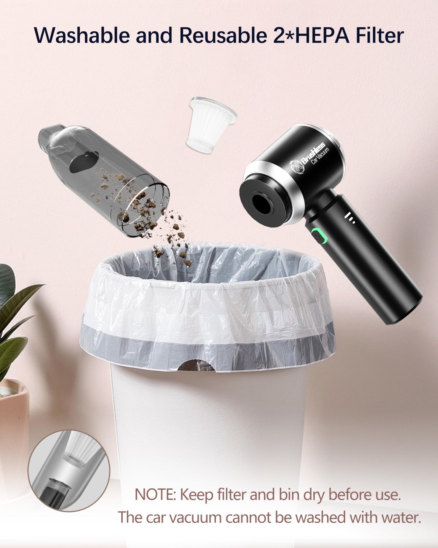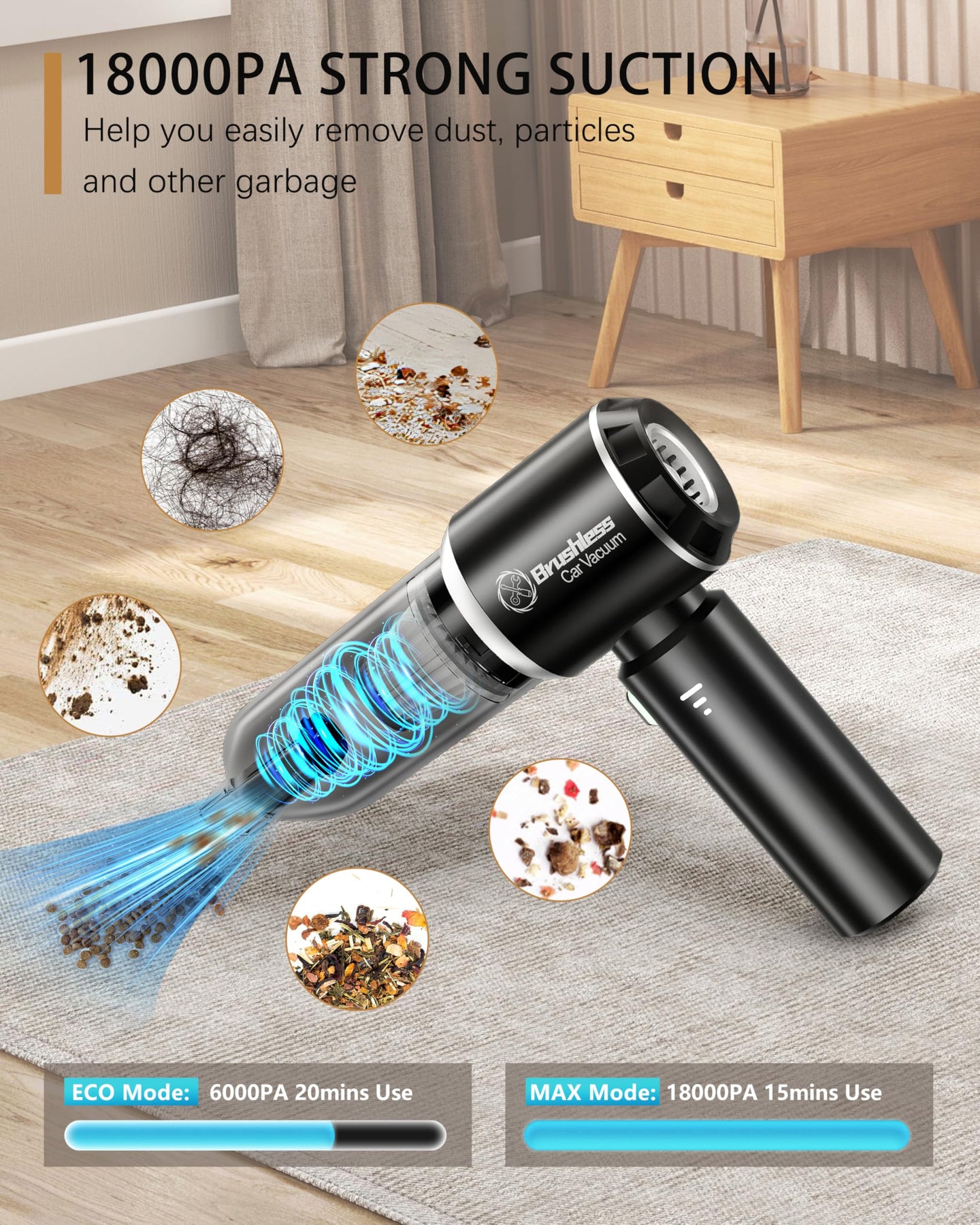 - 18000PA Hochleistungs auto staubsauger stark, Bequemes multifunktionales reinigungswerkzeug, Stark handstaubsauger geeignet für autos, Haus, Küche, Büro und andere umgebungen. der Ieistungsstarke, Bürstenlose motor arbeitet mit geräuscharmem betrieb in Kombination mit der Doppelturbinen-schaufelstruktur,um Eine effiziente absorptionsleistung zu Gewährleisten, die Hartnäckigen schmutz, Staub und trümmer behandelt und für alle Anwendungen von Sauberen autos bis zur Reinigung des Hauses geeignet ist.