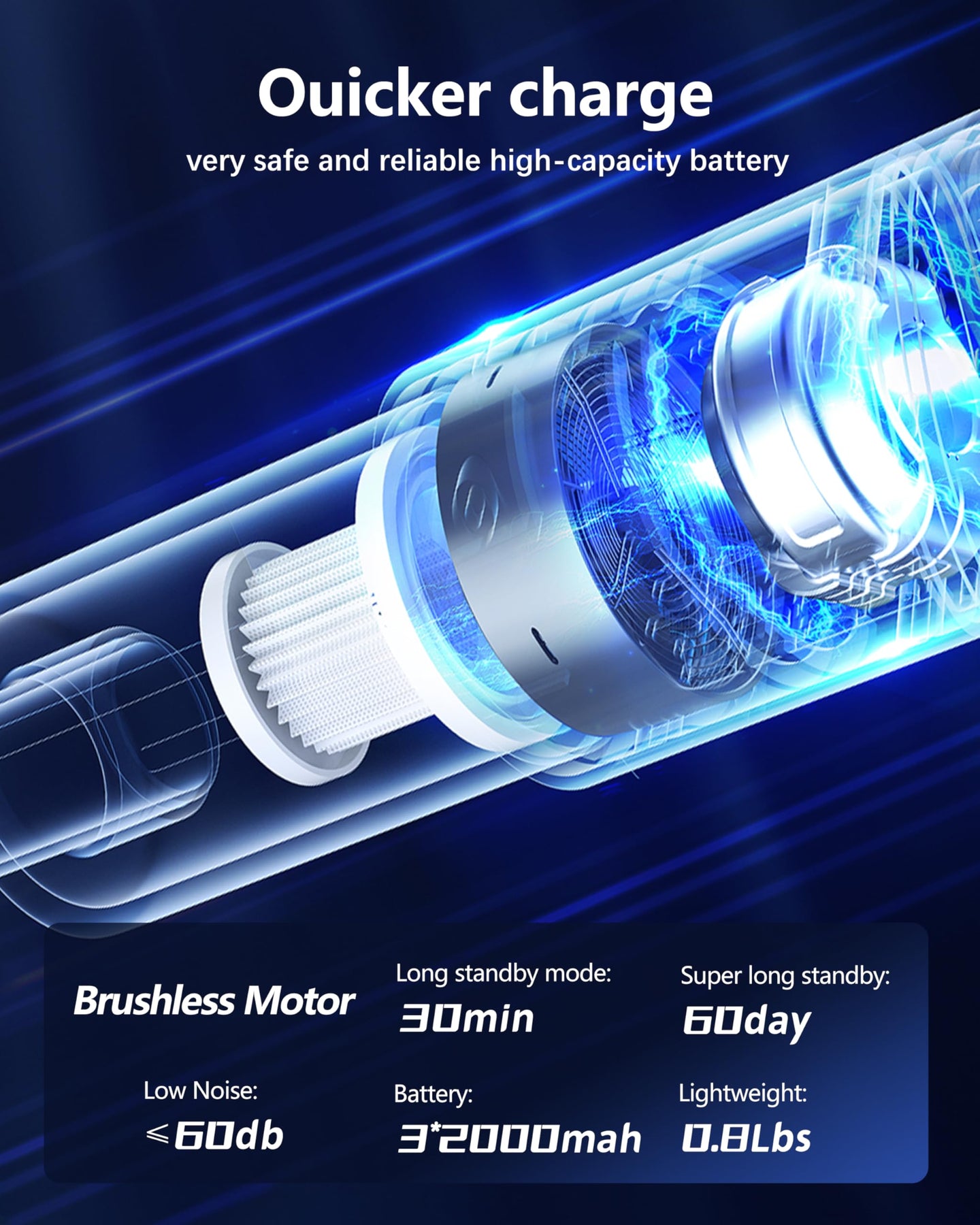 - Handstaubsauger dieser mini-auto-staubsauger Verfügt über eine Eingebaute 4000 mAh Wiederaufladbare lithium-ionen-batterie und Seine ultra-hohe Kapazität kann bis zu 30-Minuten Kontinuierliche reinigung bieten, nachdem er für 3-4 Stunden vollständig aufgeladen wurde. Die ultra-hohe Kapazität des autosaugers kann Ihnen ein Ausgezeichnetes ausdauererlebnis geben. Und Ihnen eine Angenehme reinigung bringen.