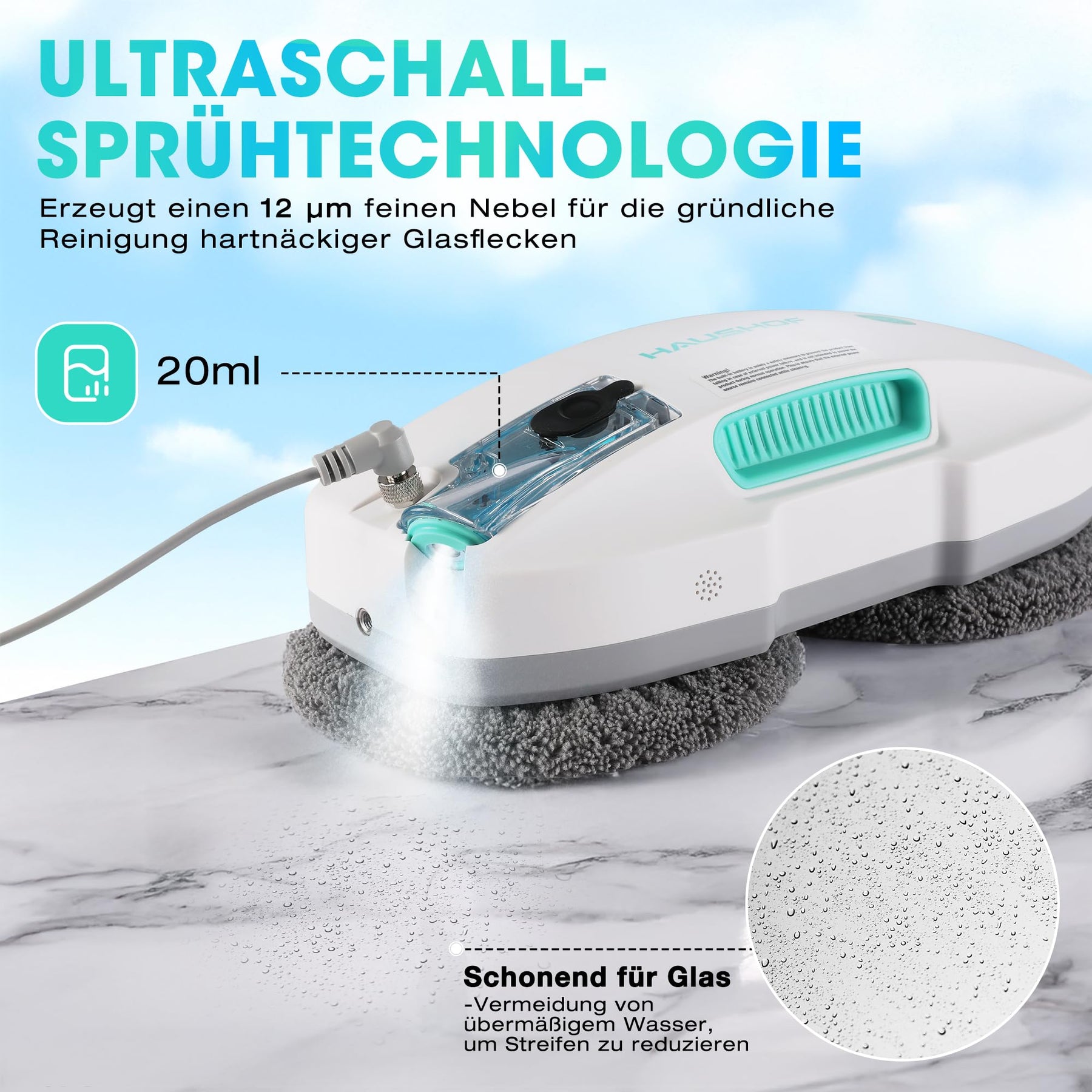 - Perfekte Ergebnisse: Die Ultraschallsprühfunktion erzeugt feinen 12μm-Nebel, während 10 Mikrofasertücher effektiv Schmutz, Wasserflecken und Streifen entfernen. 100 ml Glasreiniger ist enthalten und kann für optimale Ergebnisse in den Wassertank gefüllt werden. Hinweis: bitte feuchten die Reinigungstücher vorab an und wechseln & reinigen die Tücher regelmäßig.