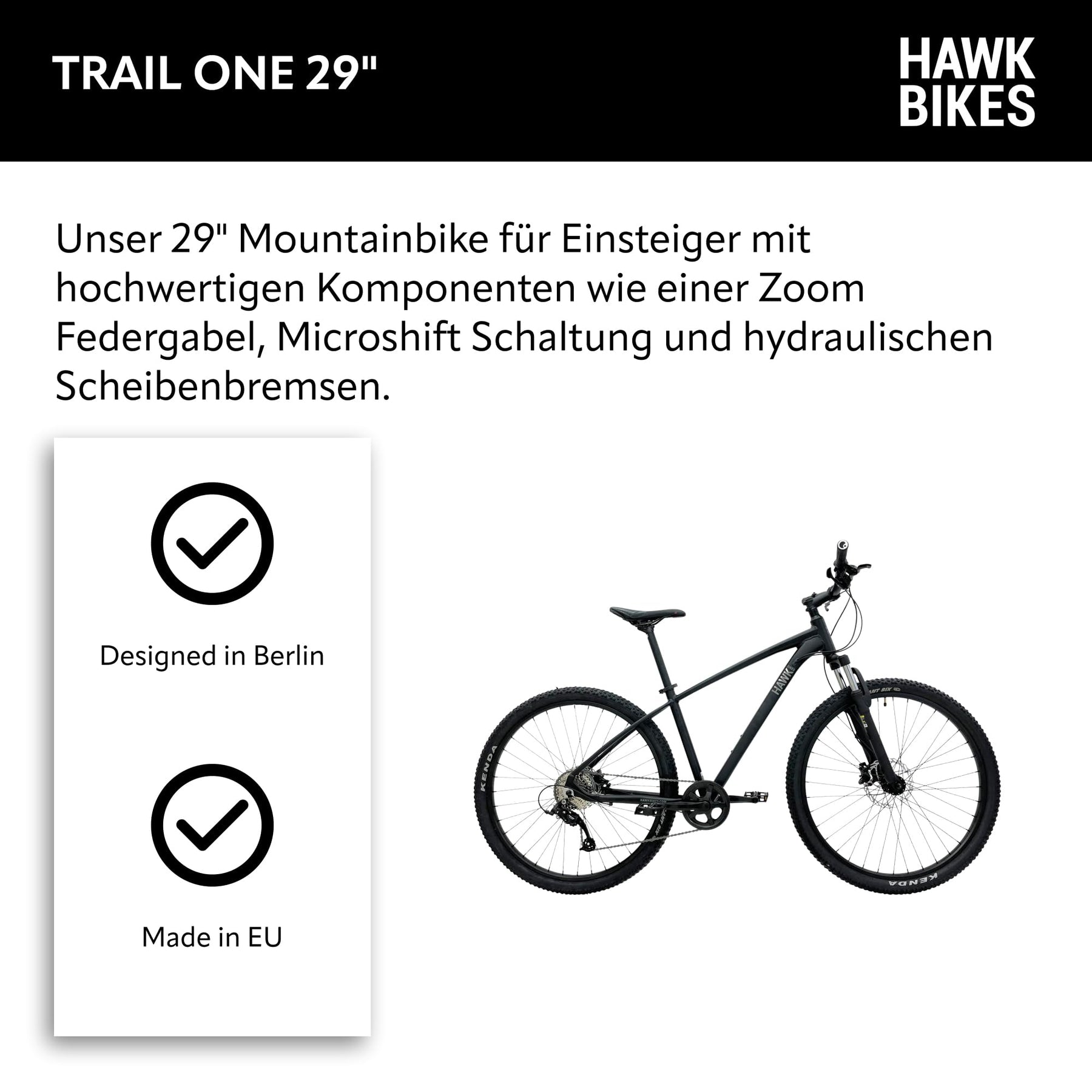 HAWK Trail One 29" Mountainbike XL Schwarz I Offroad Fahrrad mit Zoom Federgabel & Aluminiumrahmen I Mountainbike 29 Zoll, Microshift 9 Gang Schaltung