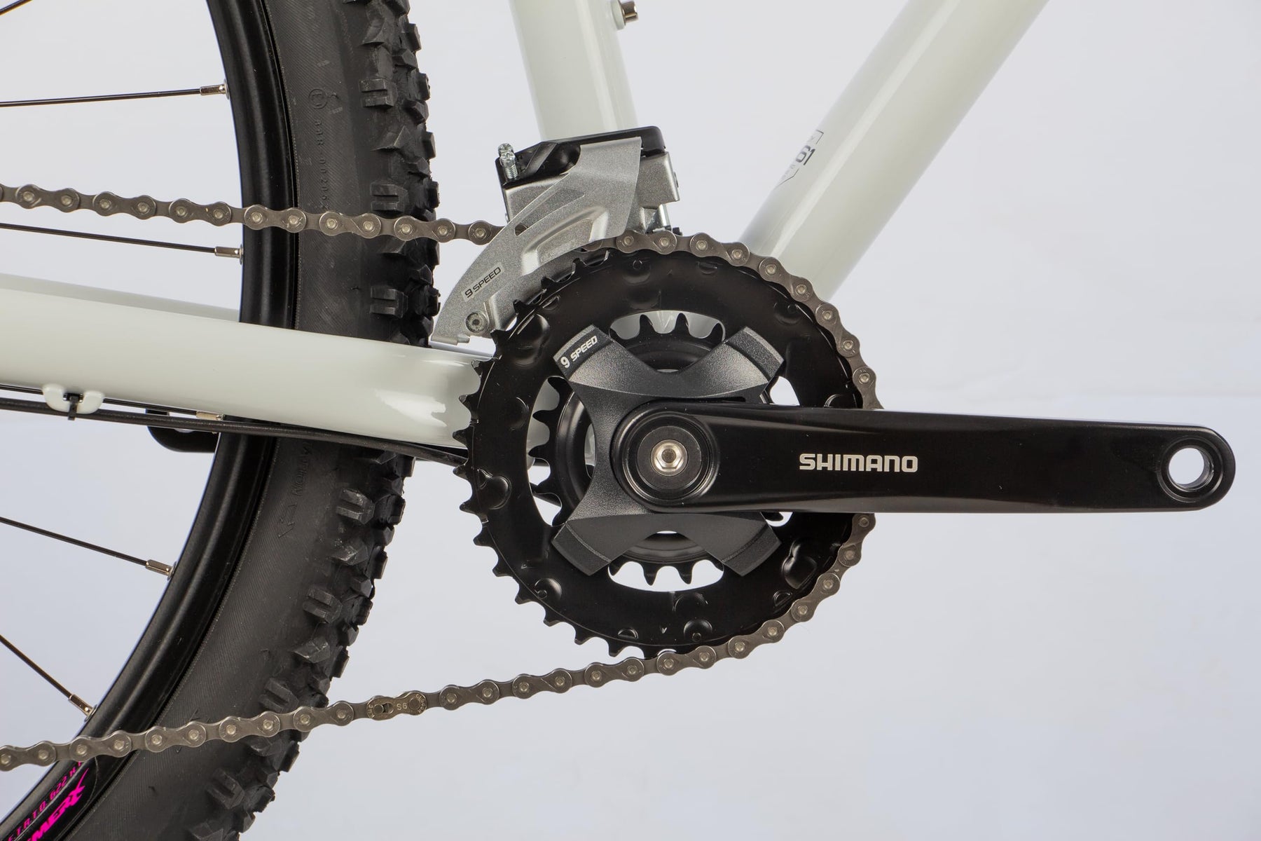 Einzelheiten: Entdecke die Damen HEAD Mountainbikes und erleben Sie die perfekte Kombination aus Stil, Komfort und Leistung! Unser Granger JOY Aluminium-Fahrrad bietet Ihnen zahlreiche Vorteile, die Sie begeistern werden. Mit seiner ausgezeichneten Bremsleistung dank des Clarks Clout Bremssystem können Sie sicher über jedes Gelände fahren. Egal, ob steile Abfahrten oder anspruchsvolle Kurven, das MTB sorgt für optimale Kontrolle und Sicherheit. Dank der bequemen Sitzposition auf dem HBC Sattel können Sie stundenlang in den Bergen unterwegs sein. Aber nicht nur die Funktionalität überzeugt bei diesem Bike, auch optisch ist es ein echter Hingucker. Das moderne Design in grau-pink, das explizit auf Frauen zugeschnitten ist, macht das Fahrrad zu einem wahren Blickfang auf jedem Trail. Die leichte Bauweise ermöglicht dir müheloses Fahren und erleichtert den Transport. Es ist speziell für anspruchsvolles Gelände entwickelt worden. Mit der exzellenten Zoom Gabel-Federung meistern Sie spielend leicht jede Unebenheit im Untergrund. Ein weiteres Highlight ist der Shimano Antrieb, der für einen reibungslosen Gangwechsel sorgt. Sie werden von der präzisen Schaltung und der hohen Zuverlässigkeit begeistert sein. Worauf warten Sie noch? Erleben Sie die unvergesslichen Abenteuer in der Natur! Diese Kombination aus Qualität, Komfort und Performance werden Sie nicht mehr missen wollen.