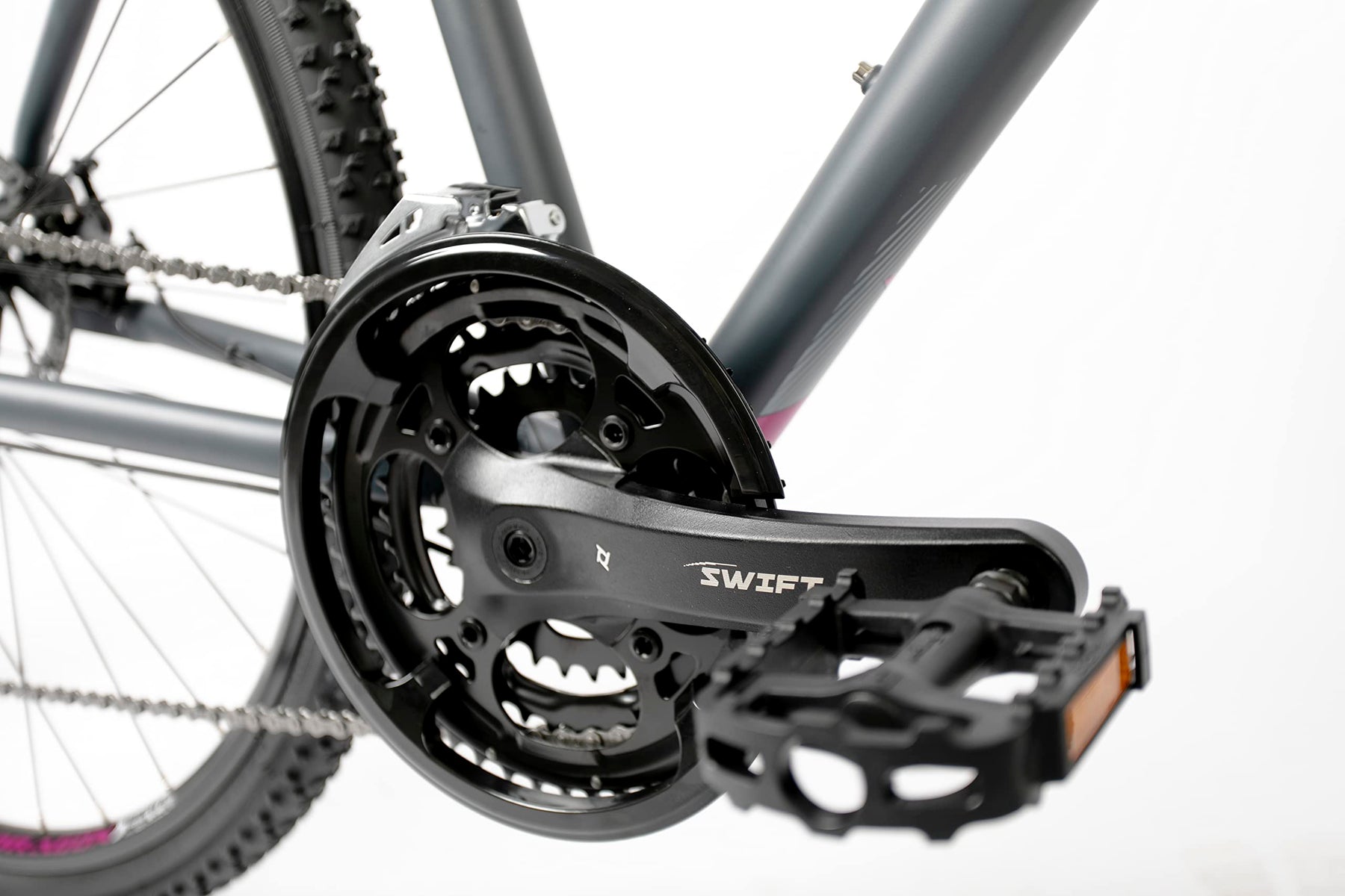 - Dank der Federgabel mit 63 mm Federweg wird unruhigeres Gelände zum Vergnügen. Die mechanischen Scheibenbremsen hinten und vorne sorgen für die nötige Kontrolle und die hochwertigen Felgen für mehr Stabilität auf jeder Art von Untergrund.