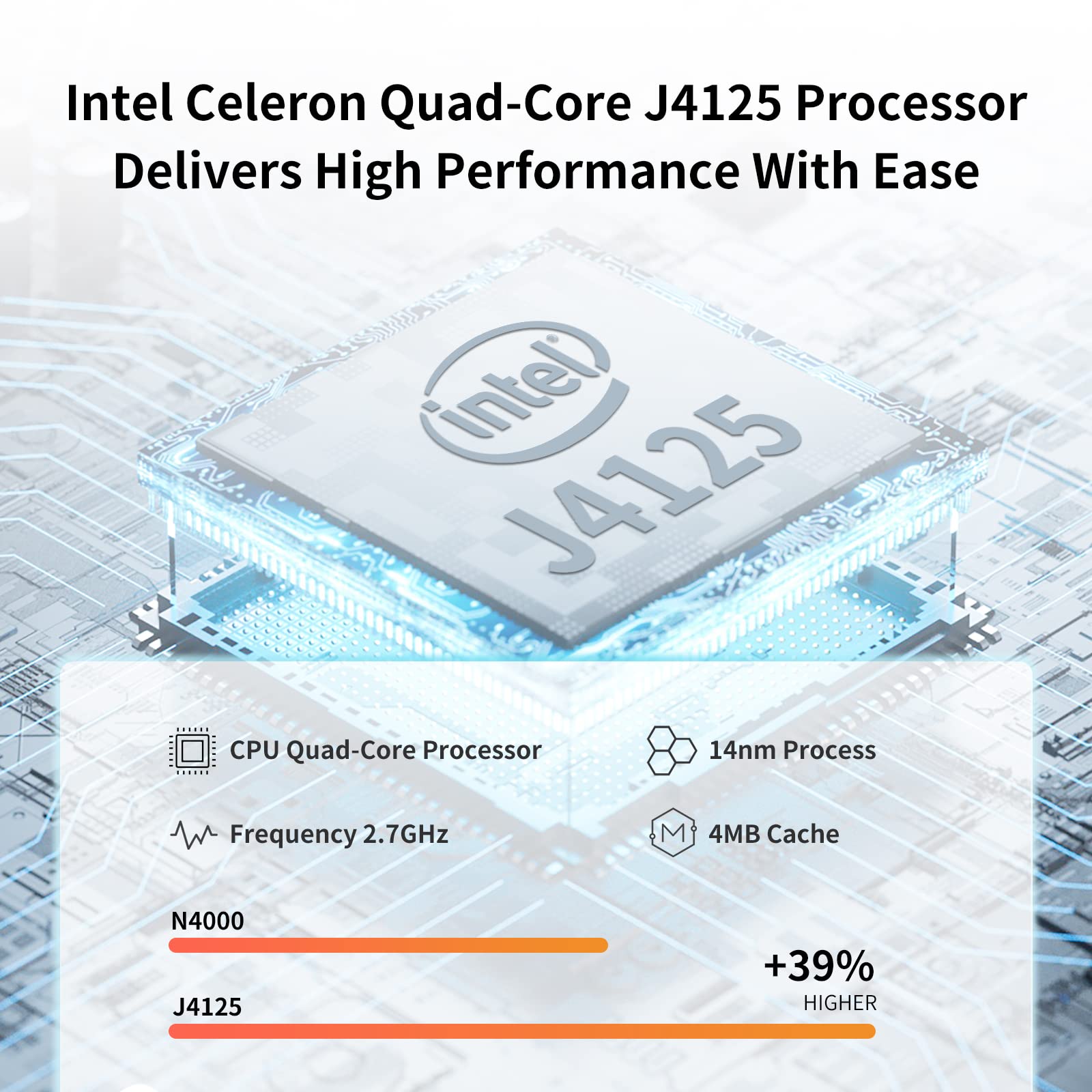 - 【Lüfterloser Mini-PC】Dieses Mini-Tablet ist mit einem J4125-Prozessor ausgestattet, um CPU/GPU-Drosselung zu verhindern. Es handelt sich um einen leistungsstarken Quad-Core-lüfterlosen Mini-PC, der sich hervorragend für tägliche Aufgaben im Geschäfts-, Familien- und Unterhaltungsbereich eignet. Mit einer Basisbetriebsfrequenz von 2,0 GHz bis 2,7 GHz (4 MB Cache) verbraucht es weniger als 10 Watt Leistung. Es arbeitet geräuschlos ohne jeglichen Lärm und gewährleistet eine Effizienzsteigerung.