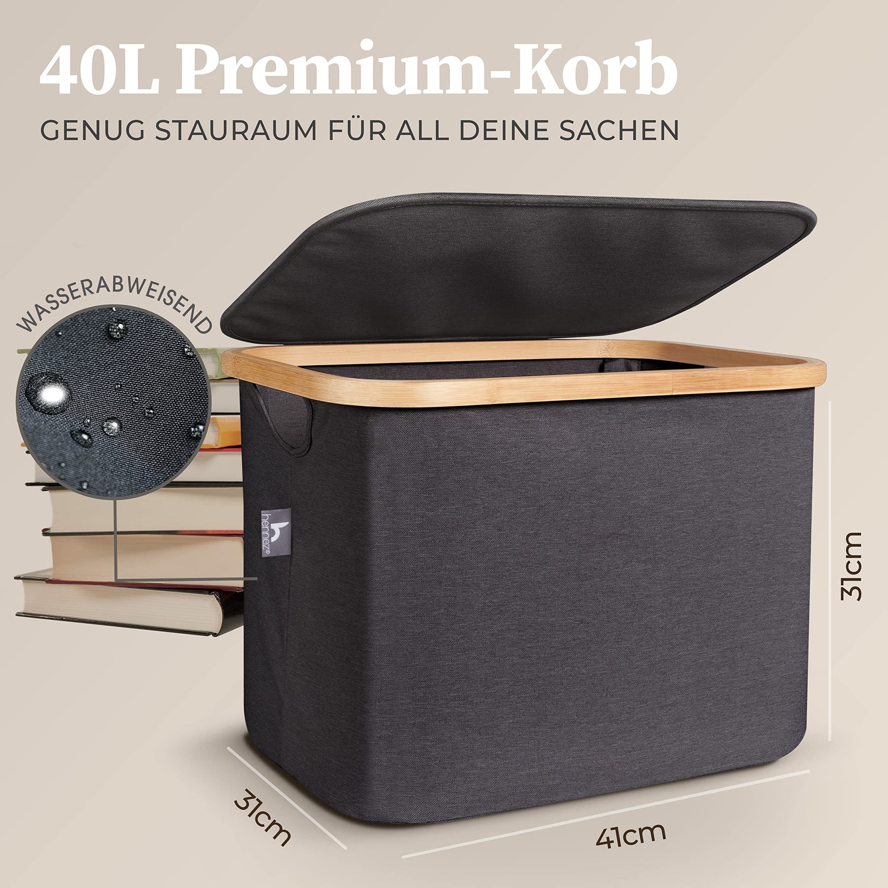 HENNEZ Aufbewahrungsbox mit Deckel 40L klein Korb kompatibel IKEA KALLAX Regal Körbe - Stoff Korb Altpapier Aufbewahrungskorb grau - Aufbewahrungsboxen Regalkörbe Griff Papier Box - Kiste mit Deckel