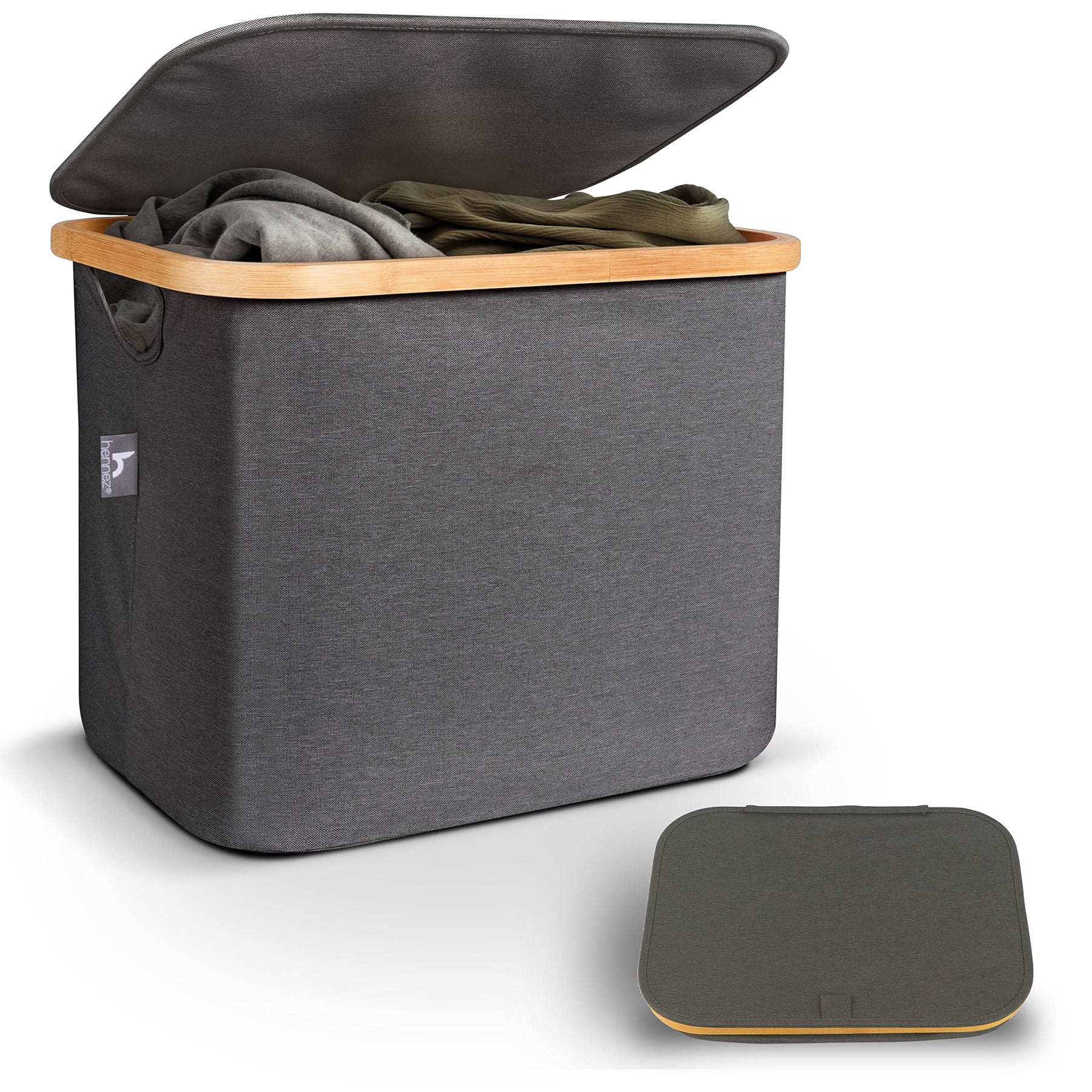 • SCHUTZ FUNKTION: Der Faltkorb mit Deckel ist durch das Material nicht nur hochwertig und modern, sondern auch feucht abwischbar und vor Blicken geschützt. Durch den Deckel kann die Aufbewahrungsbox mit Deckel Stoff gut verschlossen werden.